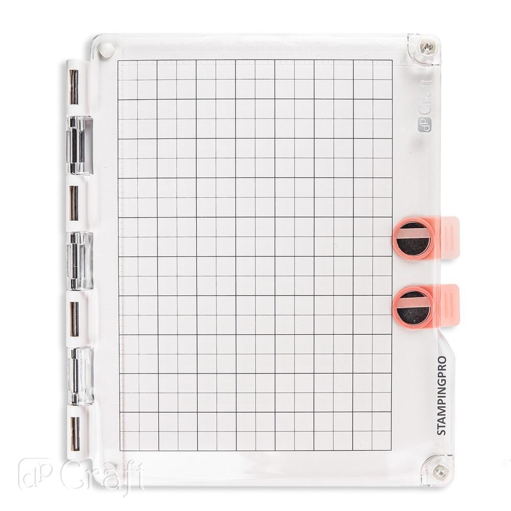 Innowacyjna platforma do stemplowania, która zapewnia precyzyjne odbicie wzoru w dokładnie wybranym miejscu. Nadaje się zarówno do stempli gumowych jak i akrylowych. Baza jest magnetyczna, a w zestawie znajdują sie dwa magnesy ułatwiające przymocowanie stemplowanego arkusza do bazy.