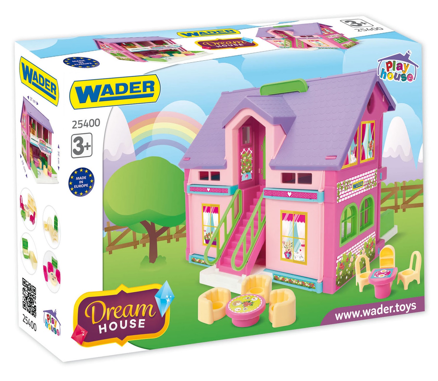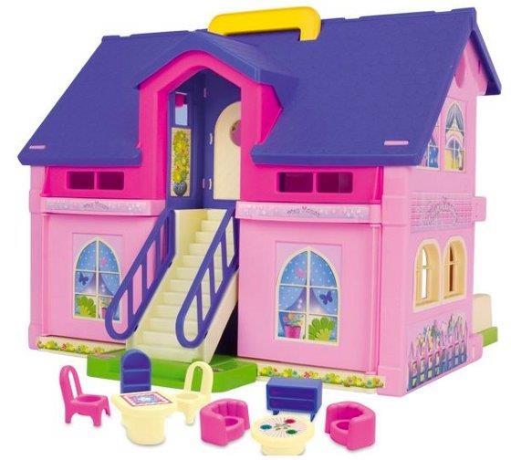 Bardzo funkcjonalna zabawka wspierająca rozwój społeczny. Dziecko może uczyć się samodzielnie urządzać mieszkanie, co pobudza jego wyobraźnię przestrzenną. Na wyposażeniu domku znajduje się 14 mebelków, którymi każda dziewczynka może samodzielnie urządzić wszystkie pokoiki. W skład zestawu wchodzi znajdujący się na parterze salon i taras z basenem oraz sypialnia i łazienka, które umiejscowione są na piętrze. Dzięki uchwytowi umocowanemu na dachu, domek można bez kłopotu przenosić w dowolne miejsce. A wszystko to wyprodukowane jest z nietoksycznych, bezpiecznych i wytrzymałych materiałów. Zabawka dla dzieci od 3 roku życia.