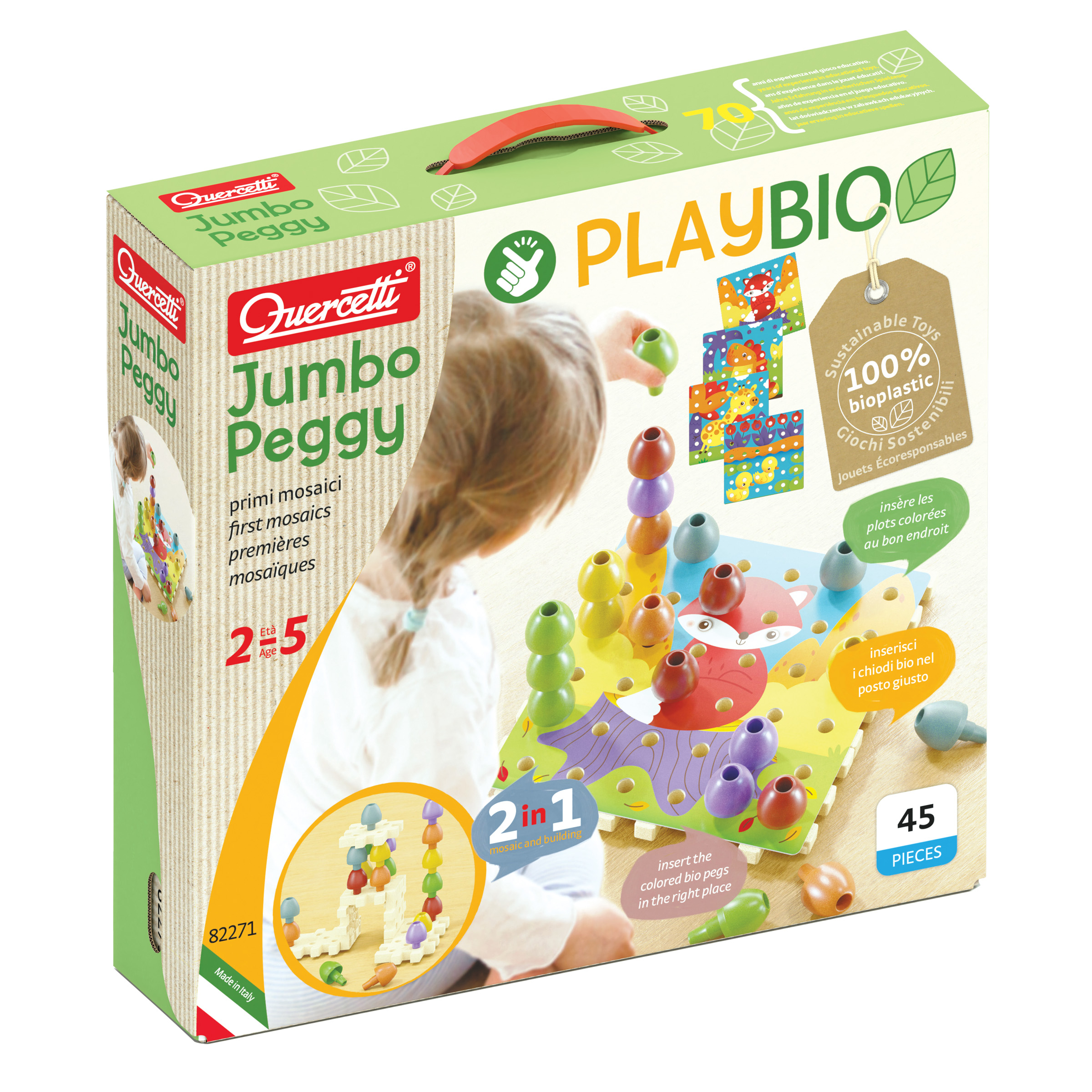 Playbio to nowa seria produktów ekologicznych włoskiego producenta Quercetti. Produkty przygotowane są z kompozytu biologicznego pochodzącego z włókien drewnianych i specjalnego plastiku. Drewniane włókna, które zwykle są utylizowane jako odpady pochodzą z tartaków, które posiadają odpowiednie certyfikaty środowiskowe. Większa zawartość drewna pozwala o zredukowanie ilości dwutlenku węgla niezbędnej przy produkcji aż o 80%. Po użyciu, zabawka może być 100% poddana recyklingowi.