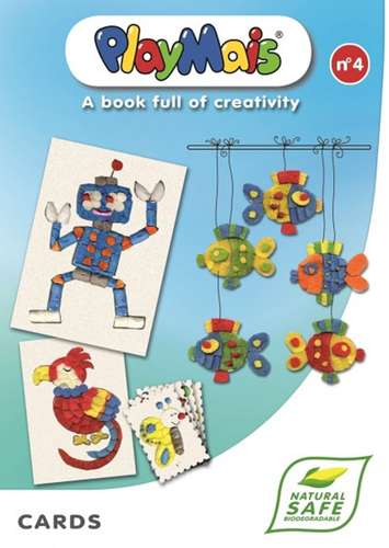 Książeczka PlayMais „Karty” przeznaczona jest dla najmłodszych dzieci od 3 lat i uczy dwuwymiarowego postrzegania przestrzeni. Książeczka zawiera kartki z wzorem do wyklejenia z użyciem PlayMais. Gotową wyklejoną kartkę można wyciąć i wysłać np. pocztą, ponieważ zawiera ona pola na adres i tekst.