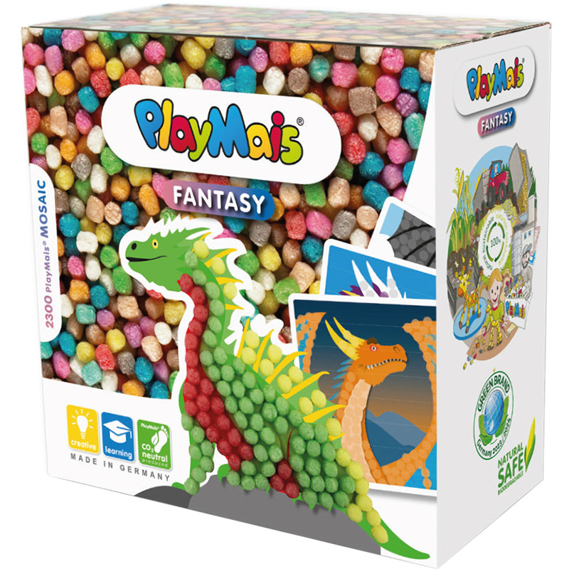 PlayMais MOSAIC FANTASY to klocki w postaci chrupek ze skrobi kukurydzianej, które można łączyć ze sobą za pomocą niewielkiej ilości wody. Zestaw ten umożliwia dzieciom tworzenie pięknych mozaik ze świata fantasy, smoków i nie tylko.