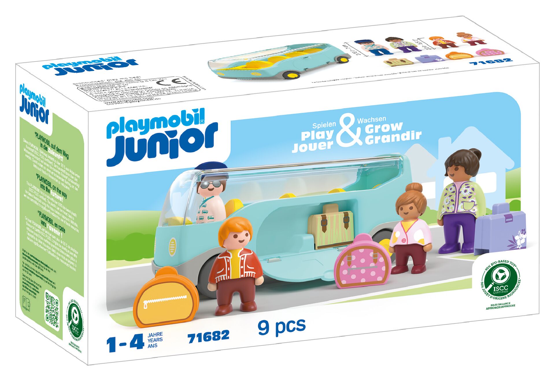 Wszystkie zestawy PLAYMOBIL JUNIOR są wykonane w ponad 90% z tworzyw sztucznych na bazie roślin, które można monitorować w materiałach pozostałych po produkcji żywności lub papieru, przyjmując system bilansu masy, stosowany w gospodarce o obiegu zamkniętym i zgodnie ze standardem ISCC PLUS. W ten sposób przyczyniamy się do zmniejszenia zużycia zasobów naturalnych.