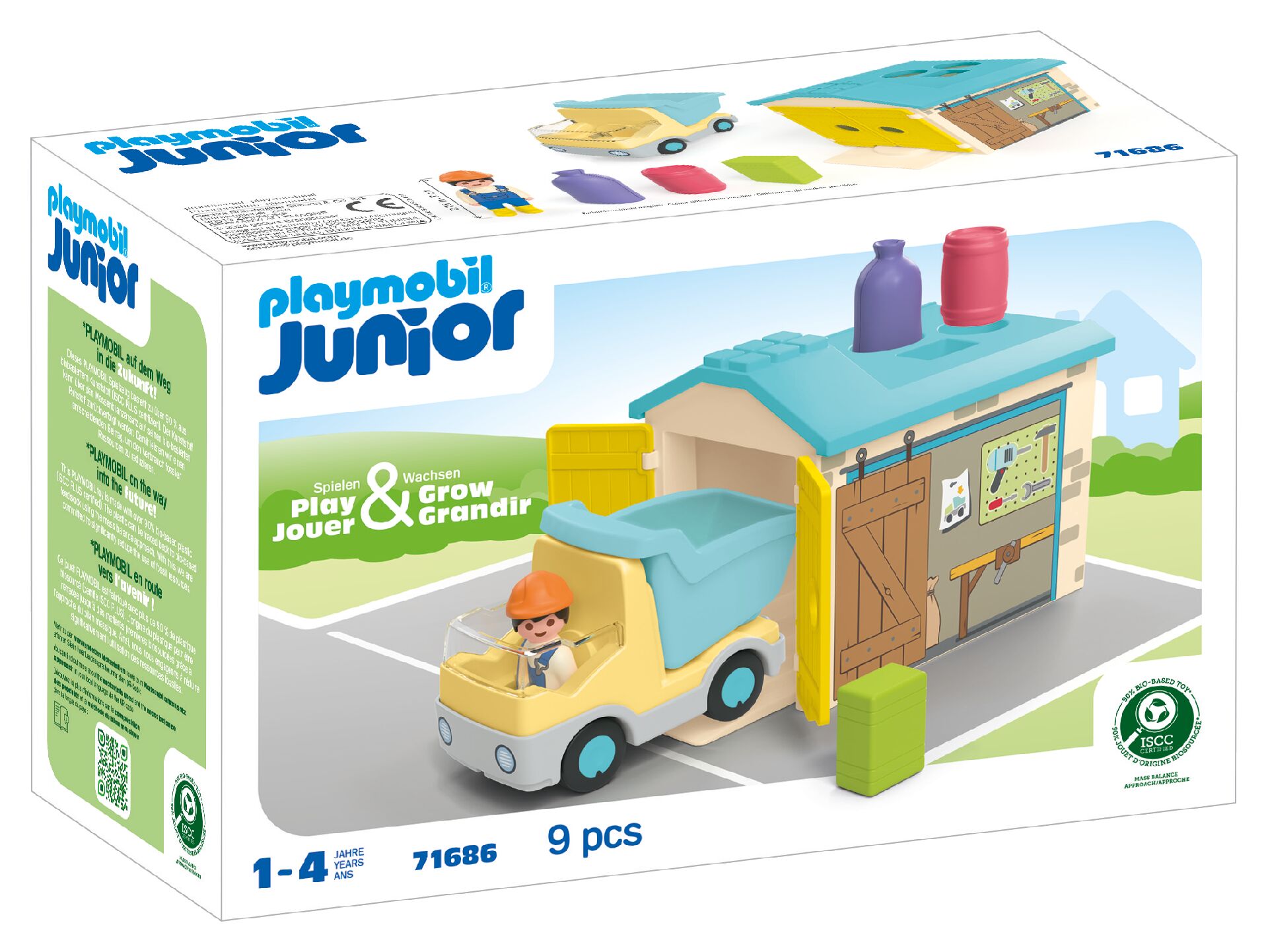 PLAYMOBIL JUNIOR nie zawiera plastyfikatorów ani małych części, które mogą zostać połknięte.Wszystkie zestawy PLAYMOBIL JUNIOR są wykonane w ponad 90% z tworzyw sztucznych na bazie roślin, które można monitorować w materiałach pozostałych po produkcji żywności lub papieru, przyjmując system bilansu masy, stosowany w gospodarce o obiegu zamkniętym i zgodnie ze standardem ISCC PLUS. W ten sposób przyczyniamy się do zmniejszenia zużycia zasobów naturalnych.