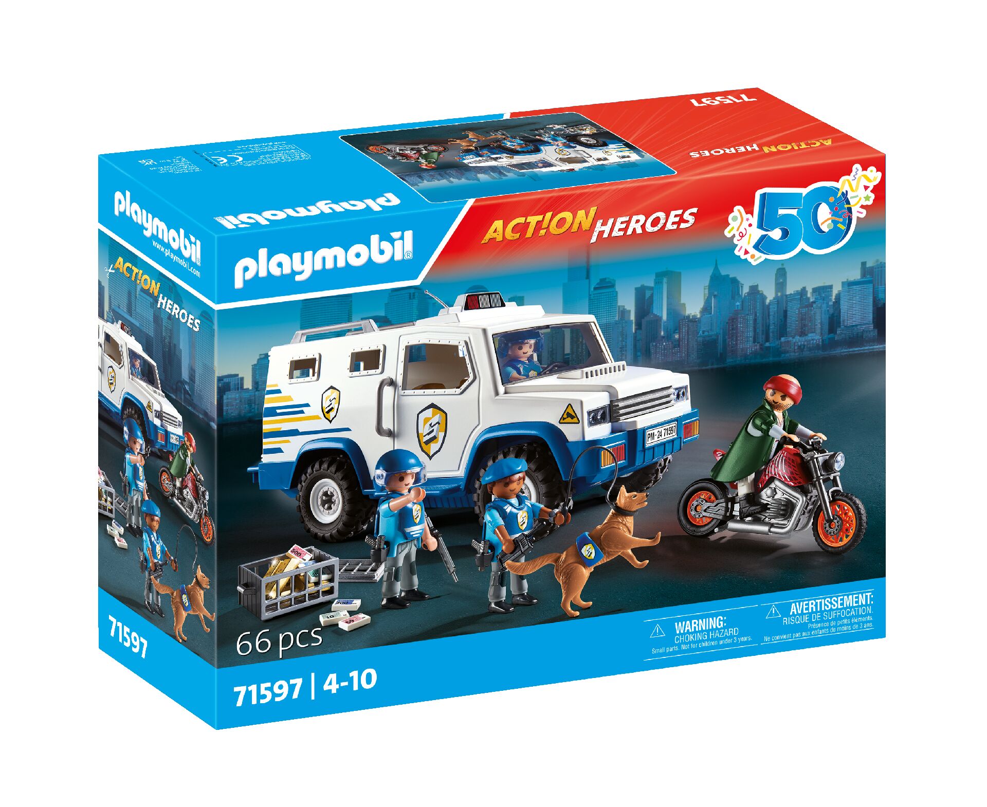 Playmobil Transporter pieniędzy jest 66-elementowym zestawem dla chłopców z serii Action Heroes.