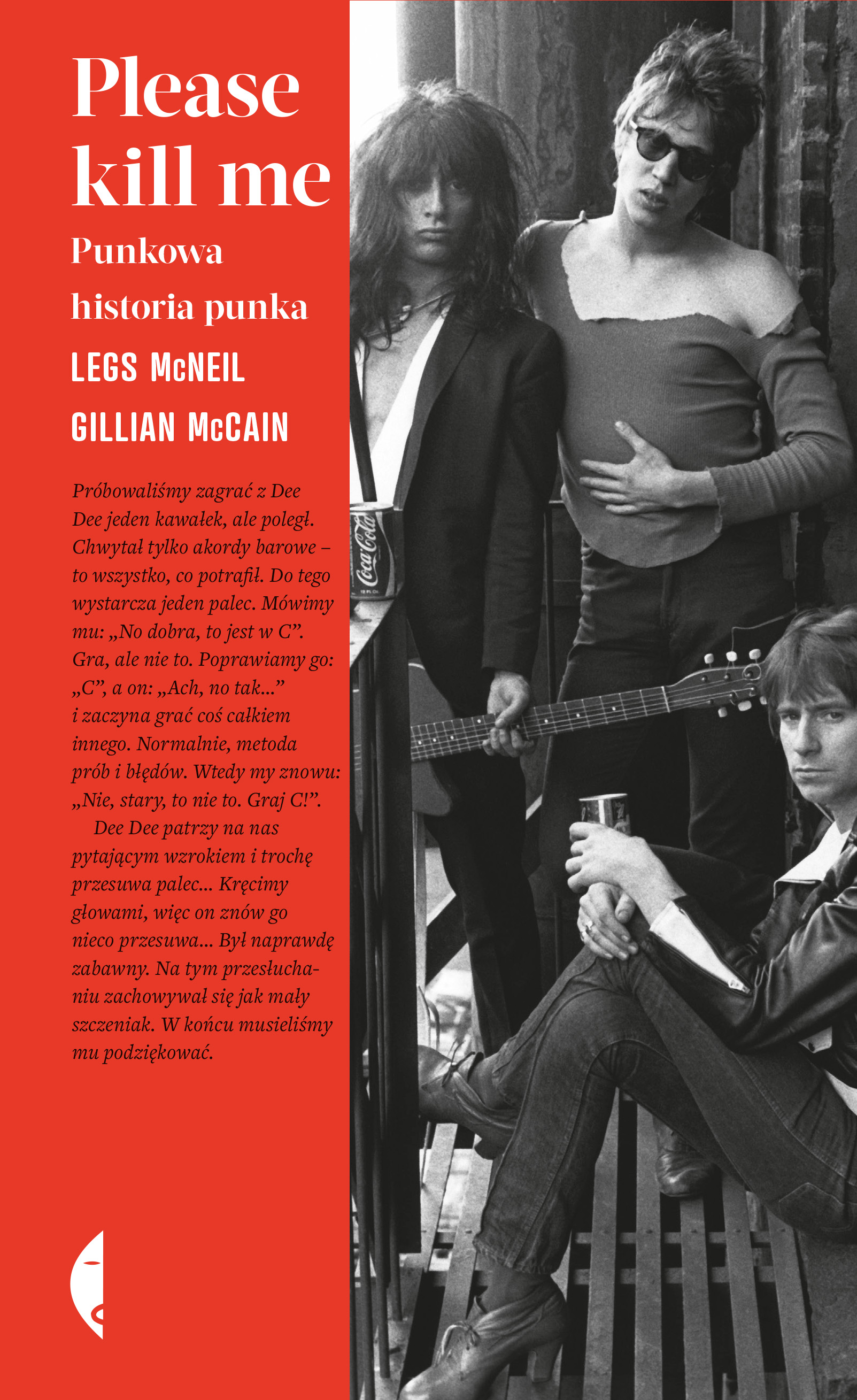 Na przełomie lat 60.i 70. XX wieku przez społeczeństwo Stanów Zjednoczonych przeszło tornado zmian. Zamieszki w Detroit, wojna w Wietnamie, hasła „make love not war” czy „flower power” podczas hipisowskich wieców, panoszące się rasizm, homofobia i szowinizm. Odpowiedź Nowego Jorku na wszystko, co działo się w tych latach, mogła być tylko jedna – awangardowa, wulgarna, pozbawiona zasad i zdrowego rozsądku. Punk. Jedna z najważniejszych subkultur w historii, która wywarła ogromny wpływ na modę, kulturę i sztukę, choć paradoksalnie jej u podstaw leżała jedynie kontestacja rzeczywistości bez politycznego zaangażowania. Kultowa książka Legsa McNeila (założyciela pisma „Punk”) oraz Gillian McCain to pierwszy i jedyny tak obszerny zapis historii punka w Stanach Zjednoczonych, przedstawiony w absolutnie nowatorskiej formie. Wypowiedzi najważniejszych postaci nowojorskiej sceny – od Andy’ego Warhola i protopunkowych MC5, The Stooges czy Velvet Underground, przez awangardowy teatr queerowy, bywalców CBGB, Patti Smith, Richarda Hella i New York Dolls, aż po schyłkowy okres lat 70., świadków słynnej historii Sida i Nancy czy odchodzących ze sceny ojców założycieli, bez cenzury wprowadzają nas w pełne seksu, narkotyków i rock’n’rolla sale zadymionych klubów i ciasnych nowojorskich mieszkań. „Please kill me. Punkowa historia punka” stanowi najpełniejszy zapis historii narodzin i upadku jednego z najradykalniejszych ruchów kontrkulturowych w historii muzyki, sztuki i filmu. To również doskonała podróż do narkotycznego Nowego Jorku lat 60. i 70., gdzie poezja mieszała się z papierosowym dymem, a gitarowe sprzężenia wibrowały w zagubionych duszach „pustej generacji”. „To pierwsza książka w historii, która opowiada o tym, jak było naprawdę.” William S. Burroughs „Prowokacyjne szaleństwo napędzane narkotykami […]. Lektura tej książki to jazda bez trzymanki.” Robert Christgau, „The New York Times Book Review” „Jako ktoś, kto doświadczył tych szalonych lat w Nowym Jorku, mogę bez wahania powiedzieć, że McNeil i McCain w stu procentach oddają niesamowitą atmosferę lat sześćdziesiątych i siedemdziesiątych.” James Wolcott, „The New Yorker” „„Please kill me” może sprawić, że uronisz łzę zarezerwowaną dla wzruszeń przy lekturze wierszy zapomnianych poetów, ale przede wszystkim będziesz płakał ze śmiechu. Do bólu szczera, fascynująca i szczegółowa historia punka. Bez żadnej cenzury.” „Rolling Stone” „Ta książka, pozbawiona historycznego patosu i muzycznego bałwochwalstwa, jako jedyna tak dokładnie opisuje zachwycający styl „pustego pokolenia”, o którym śpiewał Richard Hell.” „MOJO” „Bezczelna i hałaśliwa wyprawa na ciemną stronę mocy, pełną skandalizujących opowieści, wypełnionych niekończącym się seksem, narkotykami i rock’n’rollem.” „PAPER” „„Please kill me” to szokujące i zakulisowe spojrzenie na życie tych, którzy przetrwali burzliwe lata siedemdziesiąte.” „New York Post” „„Please kill me” to raj dla fana ruchu punkowego. Kilkaset stron wypowiedzi najważniejszych postaci tej sceny, doskonale zredagowanych przez McCain i McNeila.” Greil Marcus, „Interview Magazine”