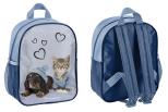 Mały plecak przedszkolny, jednokomorowy. Z boku plecaka znajduje się mniejsza kieszonka wykonana z siatki np:na butelkę, bidon lub termos. Regulowane szelki, wygodny uchwyt do przenoszenia.
