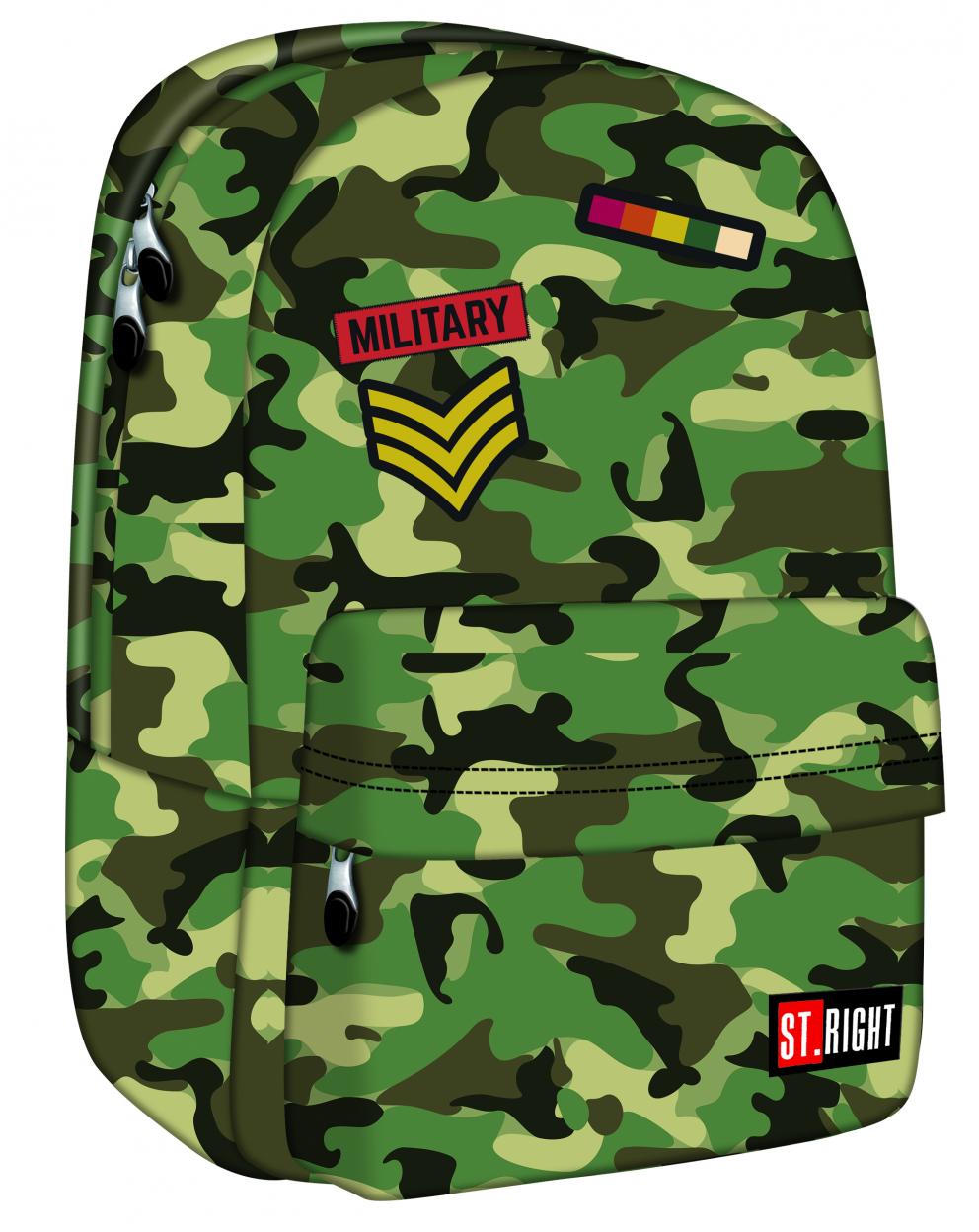 Plecak 1-komorowy ST.RIGHT BP-33 Moro - 1 komora, - 1 kieszeń zewnętrzna zapinana na suwak - 1 dodatkowa kieszeń wewnętrzna - przegroda na laptopa - miękkie szelki z regulacją długości - usztywnione gąbką plecy i spód plecaka - elementy odblaskowe - zwiększają bezpieczeństwo dziecka - materiał wodoodporny