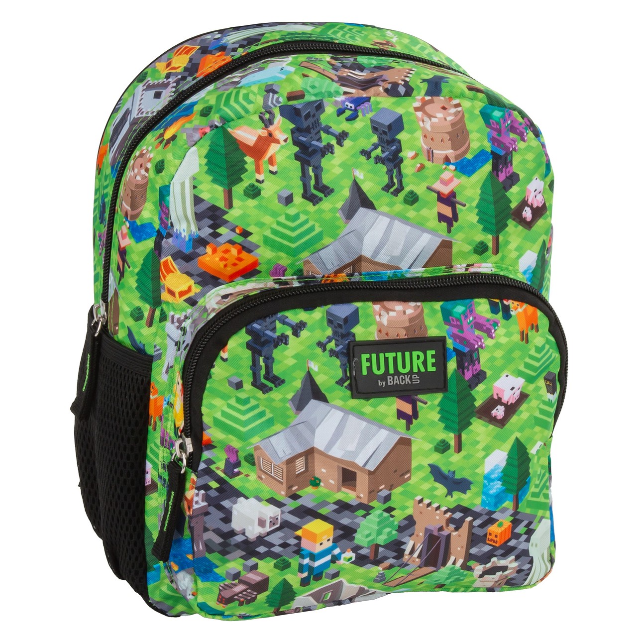 Plecak jednokomorowy z kieszenią przednią zapinany na zamki zakończone kontrastową zawieszką. Plecak posiada boczną kieszeń z siateczki na bidon oraz uchwyt do przenoszenia.