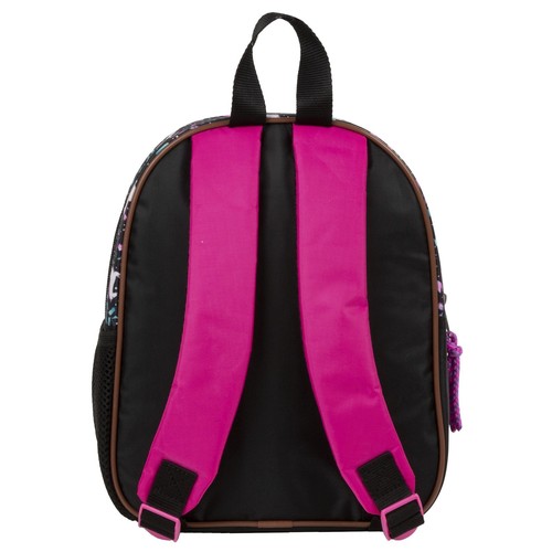 Lekki, wygodny plecak dla najmłodszych miękkie, regulowane szelki, wyściełane materiałem przepuszczającym powietrze wysokiej jakości zamek błyskawiczny, zakończony ozdobnym uchwytem boczna kieszonka na bidon obszerna kieszeń przednia - uchwyt do przenoszenia plecaka
