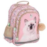 Dwukomorowy plecak szkolny z obszerną kieszenią przednią. Po bokach znajdują się dwie boczne kieszonki wykończone siatką. Plecak posiada miękkie wyściełane szelki, ergonomiczne plecy, taśmy odblaskowe, wzmacnianą rączkę oraz wzmocnione dno.