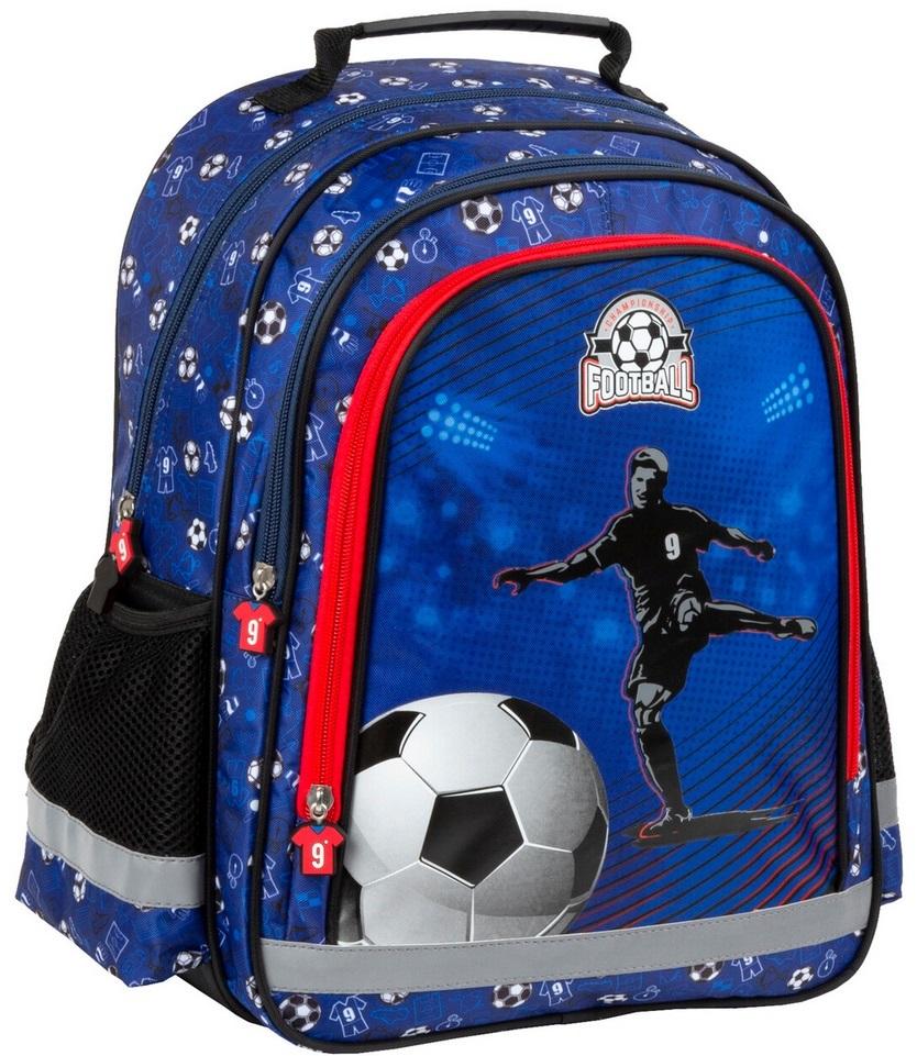 Dwukomorowy plecak szkolny z obszerną kieszenią przednią. Po bokach znajdują się dwie boczne kieszonki wykończone siatką. Plecak posiada miękkie wyściełane szelki, ergonomiczne plecy, taśmy odblaskowe, wzmacnianą rączkę oraz wzmacniane dno. Wymiary 38x28x18 cm Waga 600 g