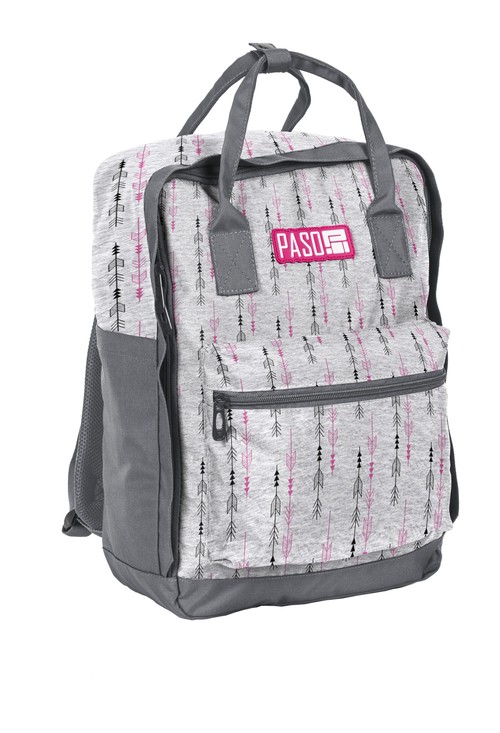 Plecak młodzieżowy, jedna komora główna z kieszenią na laptop, kieszeń przednia. Dwie kieszenie boczne, kieszeń na plecach na dokumenty. Regulowane, wyściełane siatką szelki. Dwa uchwyty do noszenia.