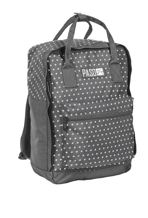 Plecak młodzieżowy, jedna komora główna z kieszenią na laptop, kieszeń przednia. Dwie kieszenie boczne, kieszeń na plecach na dokumenty. Regulowane, wyściełane siatką szelki. Dwa uchwyty do noszenia.