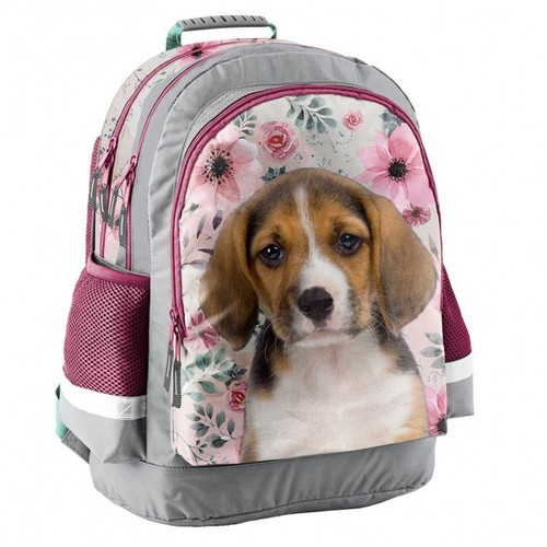 Plecak szkolny z dwoma komorami dużymi, dwoma kieszeniami na przodzie, bocznymi kieszonkami z siatki. Usztywnione, ergonomiczne wyprofilowane plecy i szelki. Plecy i szelki pokryte miękkim materiałem. Usztywnione dno. Elementy odblaskowe.
