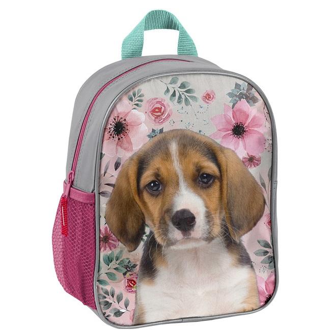 Mały plecak przedszkolny, jedna komora, jedna boczna kieszeń z siatki (mieści małą butelkę, bidon lub termos). Regulowane szelki, wygodny uchwyt do przenoszenia. Rozmiar: 28x22x10 Materiał: 300x300D/PVC