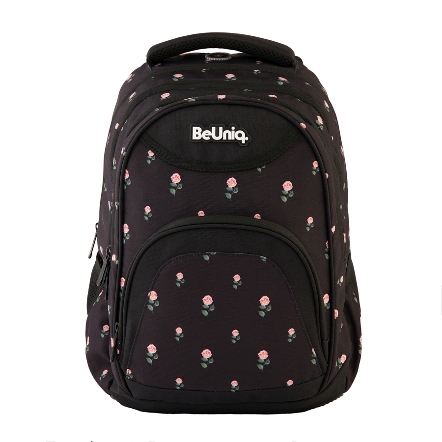 Trzy pojemne komory, kieszeń przednia z organizerem, 2 boczne kieszenie z siatki+materiał.