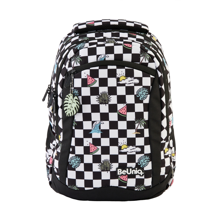 Trzy pojemne komory, kieszeń przednia z organizerem, 2 boczne kieszenie z siatki+materiał.