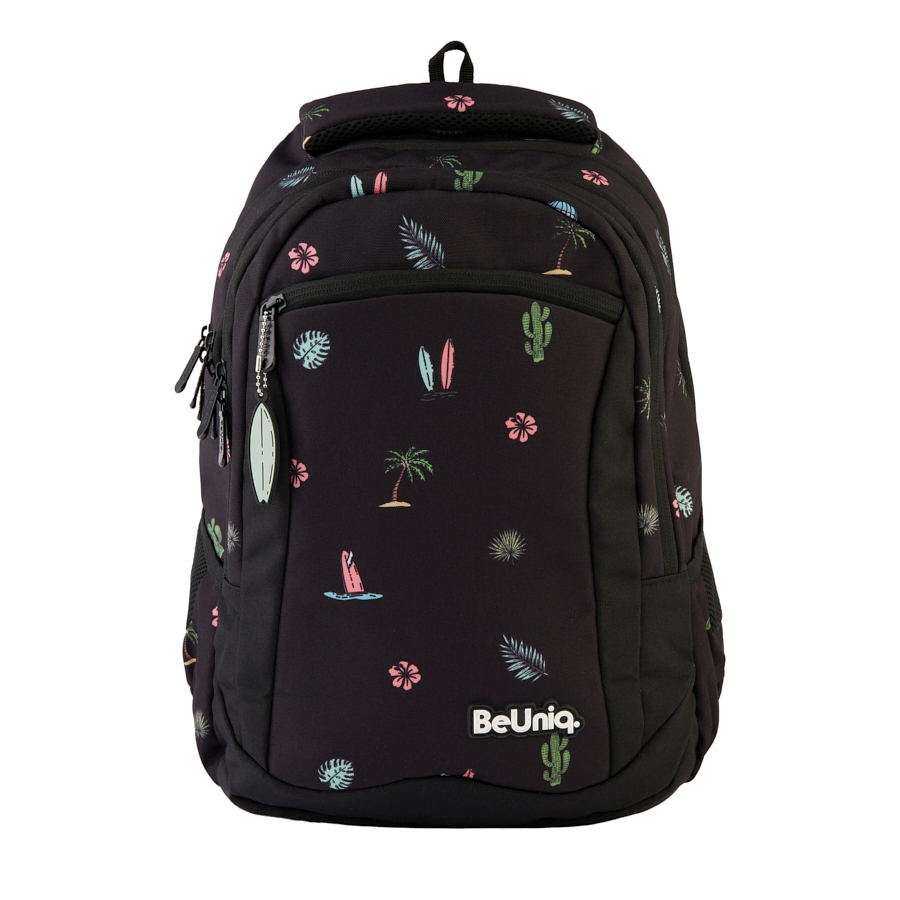 Trzy pojemne komory, kieszeń przednia z organizerem, 2 boczne kieszenie z siatki+materiał.