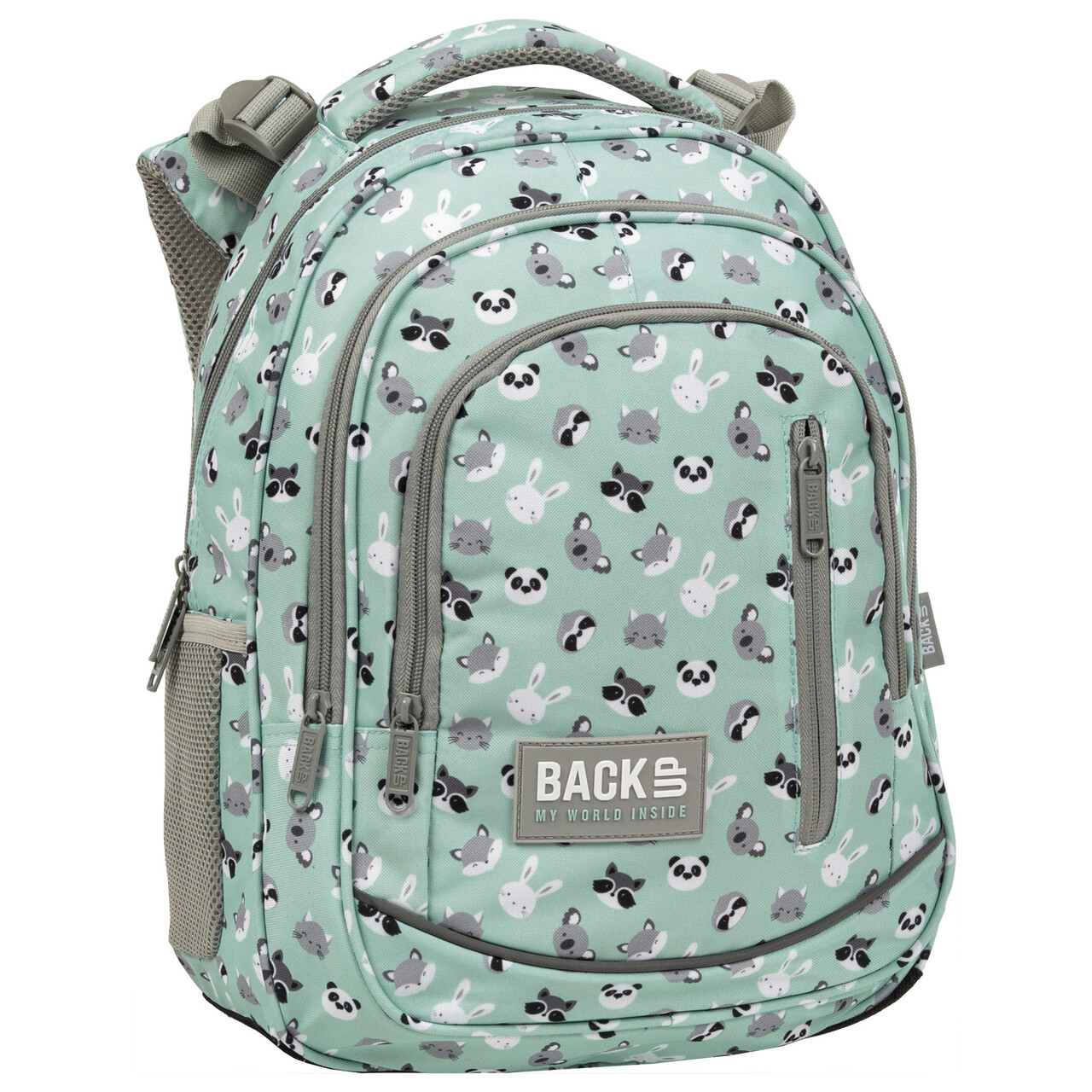 Panda, króliczek, szop, kotek, lis, leniwiec - zwierzaki to najlepsi towarzysze człowieka! Z takimi futrzastymi kompanami, którzy z niecierpliwością wypatrują kolejnych szkolnych przygód, każdy dzień staje się lepszy. Pastelowy, miętowy materiał, zabawne zwierzaki i szare detale to przepis na idealny plecak dla pierwszoklasisty! Co więcej, jego rozmiar został dopasowany właśnie z myślą o dzieciach rozpoczynających swoją szkolną przygodę. Plecak BackUP posiada: - system „grow with me” z regulacją wysokości położenia szelek - trzystopniowy system nośny, dzięki któremu można dopasować plecak do wzrostu - 3 komory - 2 boczne kieszenie na bidon - na froncie kieszeń na zamek, idealną na drobiazgi - w pierwszej komorze kieszenie do przechowywania laptopa i tabletu - w przedniej komorze kieszonkę z siateczki na zamek błyskawiczny, uchwyt na klucze, przegródki na długopisy, legitymację oraz większą kieszeń na chusteczki, płyn antybakteryjny, czy gumy do żucia - ergonomiczne, usztywnione plecy wyprofilowane oddychającą pianką - miękkie, profilowane szelki z możliwością regulacji - regulowany pasek mostka - czarne dno wykonane ze wzmocnionej tkaniny - na dnie gumowe stopki, które zabezpieczają dno plecaka oraz sprawiają, że plecak stoi stabilnie na ziemi i nie przewraca się - wzmocnioną rączkę do przenoszenia oraz dodatkowy uchwyt do powieszenia plecaka - odblaski na froncie oraz na szelkach - rozmiar 39x27x20 cm - nazwa kolekcji: Puppies.