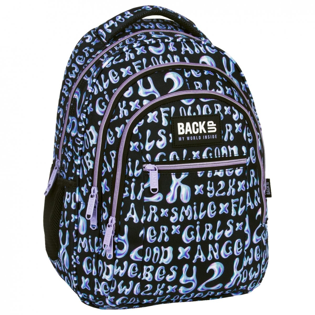 Plecak szkolny, który pokocha każda nastolatka. Minimalistyczna, klasyczna czerń materiału ozdobiona metalicznymi, motywującymi napisami z efektem holo, które dodają energii. Niezwykle modna czcionka inspirowana stylem Y2K przyciąga wzrok największych trendsetterów. Całość dopełniona jest suwakami i zamkami w stylowym odcieniu fioletu. To plecak dla dziewczynki, która wyznacza trendy na szkolnym korytarzu. Plecak BackUP posiada: - 3 duże komory - 2 boczne kieszenie na bidon - na froncie plecaka kieszeń na zamek, idealna na drobiazgi - w pierwszej komorze kieszenie do przechowywania laptopa i tabletu - w drugiej komorze kieszonkę z siateczki na zamek błyskawiczny, uchwyt na klucze, przegródki na długopisy, legitymację oraz większą kieszeń na chusteczki, płyn antybakteryjny, czy gumy do żucia - ergonomiczne, usztywnione plecy wyprofilowane oddychającą pianką - miękkie, profilowane szelki z możliwością regulacji - regulowany pasek mostka - czarne dno wykonane ze wzmocnionej tkaniny - wzmocnioną rączkę do przenoszenia oraz dodatkowy uchwyt do powieszenia plecaka - odblaski na szelkach - rozmiar 42x30x20 cm Nazwa kolekcji: Napisy Holo