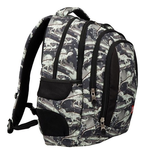 Funkcjonalność: 4 komory 3 kieszenie zewnętrzne 2 dodatkowe kieszenie wewnętrzne wewnętrzna kieszeń pokryta polarem wyjście na słuchawki organizer z zawieszką na klucze Komfort i bezpieczeństwo: profilowane, ergonomiczne plecy, dodatkowo usztywnione miękkie szelki z regulacją długości materiał wodoodporny wzmocniony gąbką spód plecaka pas mostkowy ergonomicznie wzmocniona rączka elementy odblaskowe uchwyty do suwaka głównej komory pozwalają na założenie zabezpieczenia kłódkowego lub z szyfrowaniem TSA