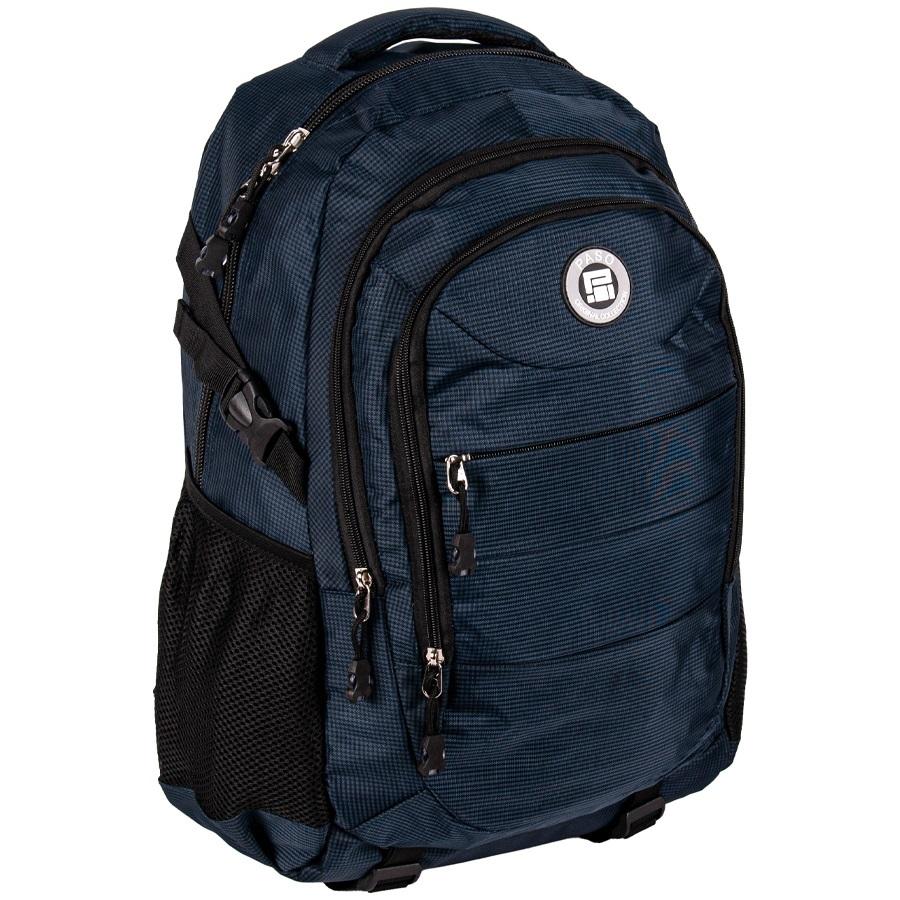 Plecak młodzieżowy Active w kolorze granatowym. Idealnie nadaje się do szkoły, na wycieczki czy wyjazdy weekendowe. Wyposażony jest w dwie duże komory, jedną obszerną kieszeń przednią, na której znajduje się płaska kieszonka doskonała do przechowania telefonu, portfela, kluczy czy innych drobiazgów. Komora główna z kieszenią na laptop zamykana na zamek dwukierunkowy. Komora mniejsza wyposażona w organizer. Plecy oraz szelki modelu zostały mocno usztywnione oraz pokryte siatką podnoszącą komfort noszenia. Plecak posiada dwa wygodne uchwyty do przenoszenia w dłoni lub zawieszenia. Boczne i dolne pasy ściągające zapewniają dodatkowe miejsce pakowe dla kurtki, karimaty lub innego wyposażenia. Dwie funkcjonalne kieszenie z siatki idealnie nadają się do przenoszenia butelki, bidonu lub termosu. Elementem zwiększającym atrakcyjność plecaka są wyraźne i grube zamki oraz ozdobne pullery ułatwiąjace zamykanie.