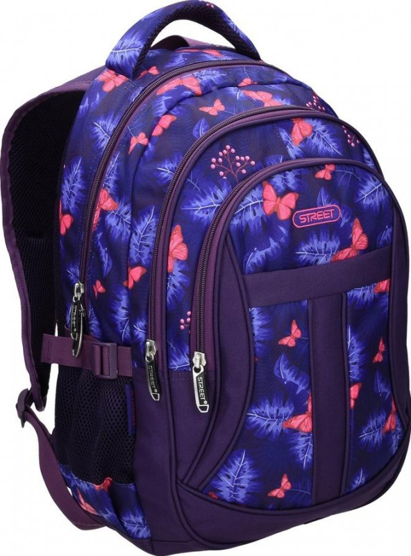 Jedna z najlepiej sprzedających się kolekcji plecaka z marki STREET, młodzieżowy ACTIVE trzykomorowy to prawdziwe odzwierciedlenie ulicznego designu, który wspaniale wkomponuje się w świat szkoły. Nowoczesne wzornictwo z użyciem modnych kolorów, w kilku niepowtarzalnych kolorystykach sprawia, że każdy znajdzie wersję dla siebie. Styl oraz niewielka waga plecaka sprawiają, że będzie praktyczny również podczas przejażdżki na desce lub wycieczki w otchłań natury. Cechy plecaka: - komora główna z przegrodą na laptop lub podręczniki i podwieszaną kieszonką na suwak, zapinana na podwójny zamek błyskawiczny - środkowa komora z organizerem zapinana na suwak - przednia komora zapinana na suwak - przednia kieszonka na podręczne drobiazgi zapinana na suwak - dwie boczne kieszonki na bidon i akcesoria - wzmocniony spód - szerokie, dopasowane szelki oddychające z regulacją - lekko usztywnione plecy z dopasowanym oddychającym wykończeniem AIR SYSTEM STREET - uchwyt do zawieszenia plecaka - miękki, porządny uchwyt do noszenia plecaka - suwaki zakończone wygodnymi metalowymi uchwytami z logiem STREET - boczne pasy do kompresji plecaka.