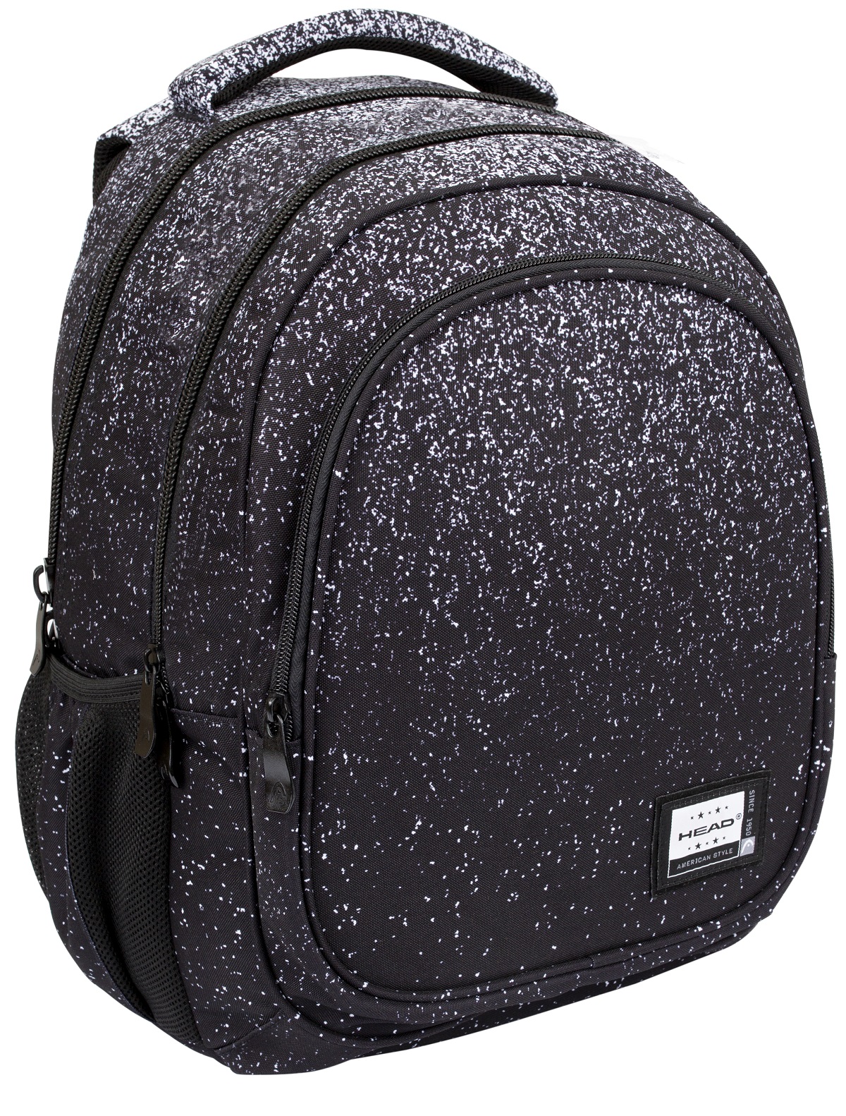 Trzykomorowy plecak fashion Head z czarno białym motywem szumu to jeden z najmodniejszych wzorów tego sezonu. Odważne przejścia tonalne z czarnymi kropkami na białym tle spodobają się wszystkim miłośnikom mody, którzy chcą wyróżniać się z tłumu.