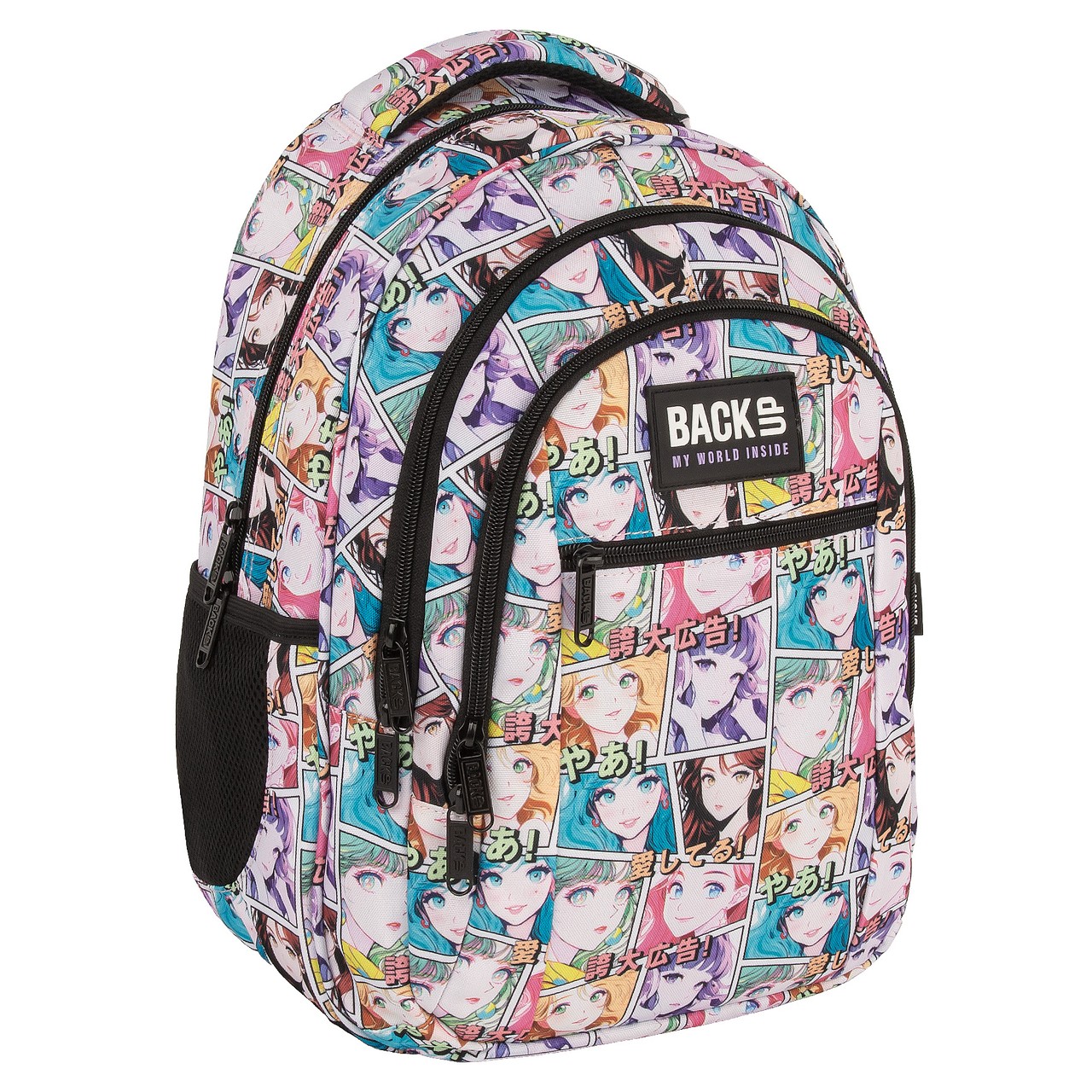 Idealny dla fanów mangi i anime! Jego design inspirowany jest estetyką kawaii, łącząc żywe kolory z uroczymi motywami typowymi dla japońskiej popkultury. Plecak zdobią ekspresyjne postacie o charakterystycznych, dużych i lśniących oczach, a także cute napisy w języku japońskim, które dodają mu autentycznego, azjatyckiego charakteru. Nazwa kolekcji: manga.