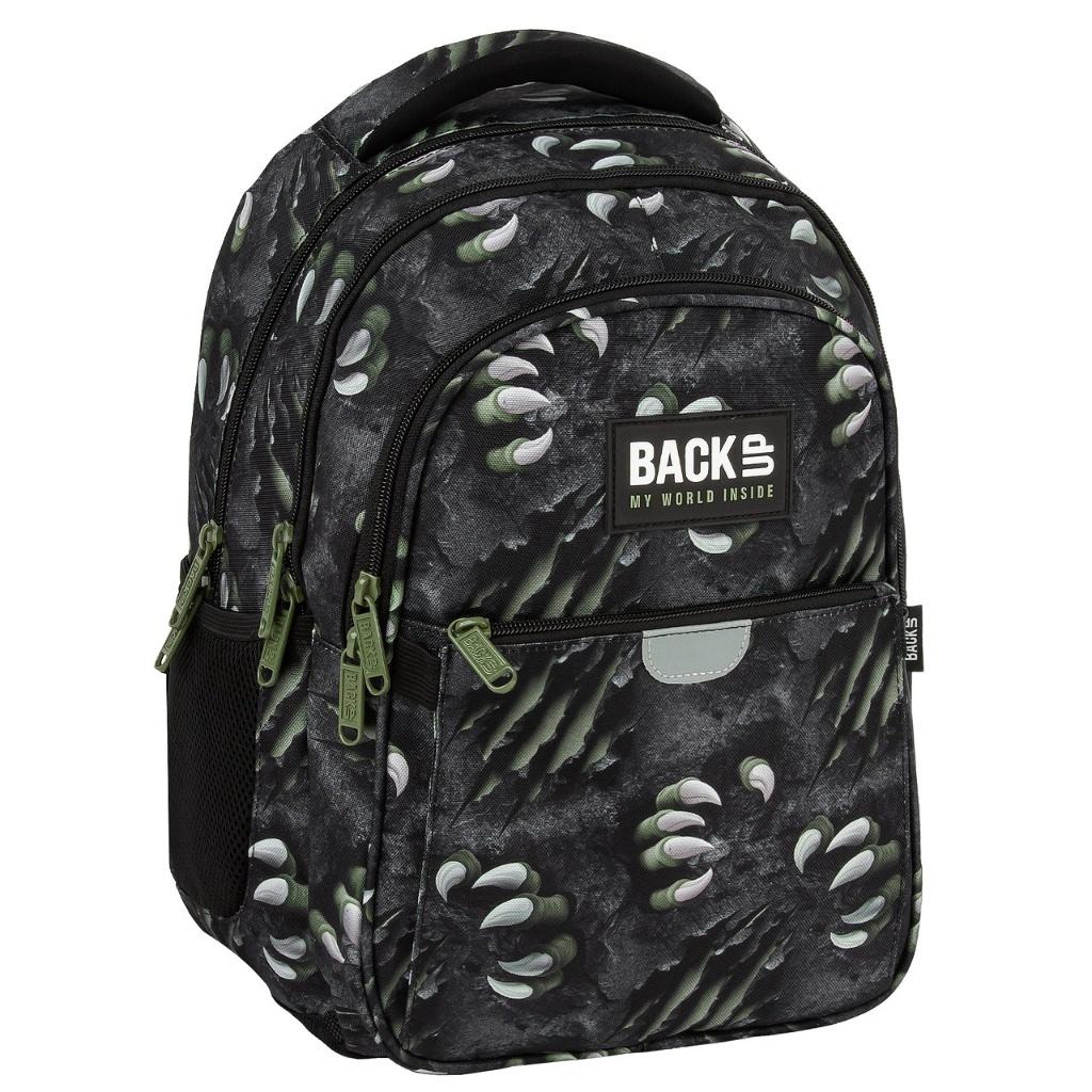 REX - wypuść bestię! Wyróżnij się z tłumu niepowtarzalnym wzorem inspirowanym śladami pazurów miejskiego drapieżnika. Agresywne rozdarcia, ultra dynamiczny design i kontrastowe kolory - czarna noc przełamana energetyczną zielenią. Dzięki rozmiarom dopasowanym do drobnej postury dziecka, to idealny plecak dla pierwszoklasisty. Plecak BackUP posiada: - 3 komory - 2 boczne kieszenie na bidon - na froncie plecaka poszerzoną kieszeń na zamek, która może pomieścić nawet małą śniadaniówkę - w pierwszej komorze dwie dodatkowe przegródki, dzięki którym łatwiej zachować porządek - w przedniej komorze kieszonkę z siateczki na zamek błyskawiczny, uchwyt na klucze, przegródki na długopisy, legitymację oraz większą kieszeń na chusteczki, płyn antybakteryjny, czy gumy do żucia - ergonomiczne, usztywnione plecy wyprofilowane oddychającą pianką - miękkie, profilowane szelki z możliwością regulacji - czarne dno wykonane ze wzmocnionej tkaniny - wzmocnioną rączkę do przenoszenia oraz dodatkowy uchwyt do powieszenia plecaka - odblaski na froncie oraz na szelkach - rozmiar 39x27x20 cm Nazwa kolekcji: Rex.