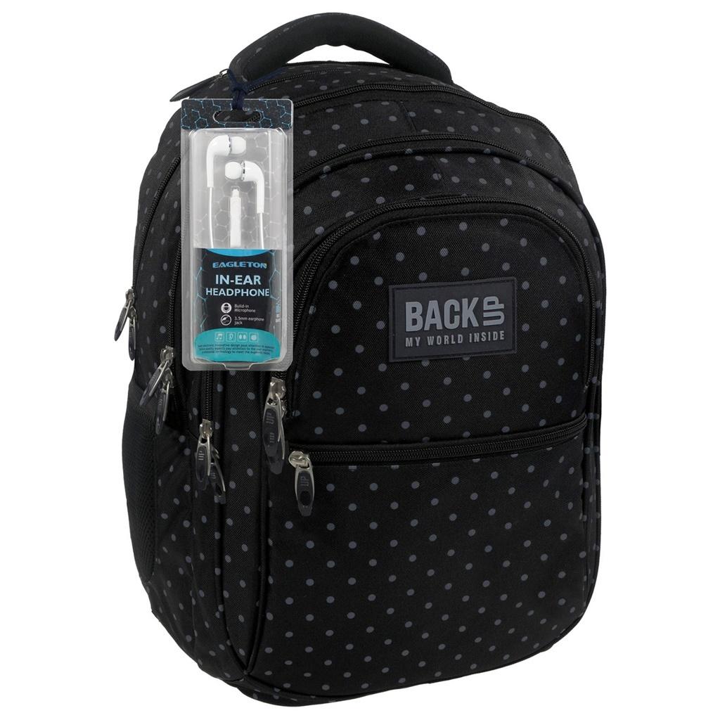 Szkolny plecak BackUP model B w bardzo uroczy wzór, który mimo zastosowania wyłącznie czerni i szarości posiada niezwykle dziewczęcy charakter. W zestawie słuchawki - gratis. Wyposażenie: - 4 duże komory - 1 pojemna, przednia kieszeń - 2 boczne kieszenie na napój - w tylnej komorze kieszenie na laptopa i tablet - w trzeciej komorze wygodna kieszeń na zamek na drobiazgi - w przedniej komorze poręczny organizer z kieszonką na zamek oraz odczepianym uchwytem na klucze - wygodne, profilowane szelki - wygodny uchwyt do przenoszenia plecaka i dodatkowy uchwyt do powieszenia - ergonomiczne, usztywnione plecy wyprofilowane oddychającą pianką - dyskretny odblask na szelkach - rozmiar: 42x30x20 cm BackUP - My world inside Marka młodzieżowa BackUP powstała w oparciu o długoletnie doświadczenie branżowe swojego producenta firmy Derform. W najnowszej kolekcji nawiązano do najmodniejszych światowych trendów odpowiadając tym samym na potrzeby użytkowników. Plecaki tej marki charakteryzują się dbałością o każdy szczegół i troską o zdrowie użytkowników. Uzupełnieniem kolekcji plecaków jest szeroka gama piórników, worków na plecy, kosmetyczkę, toreb fitness oraz toreb sportowych.