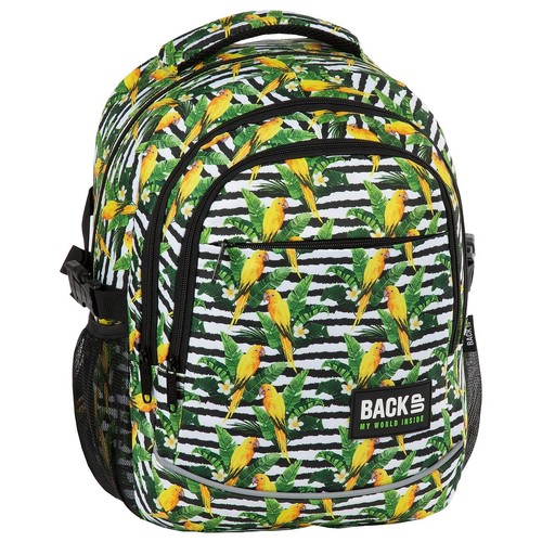 Wyposażony w usztywnione profilowane gąbką plecy i szelki:
