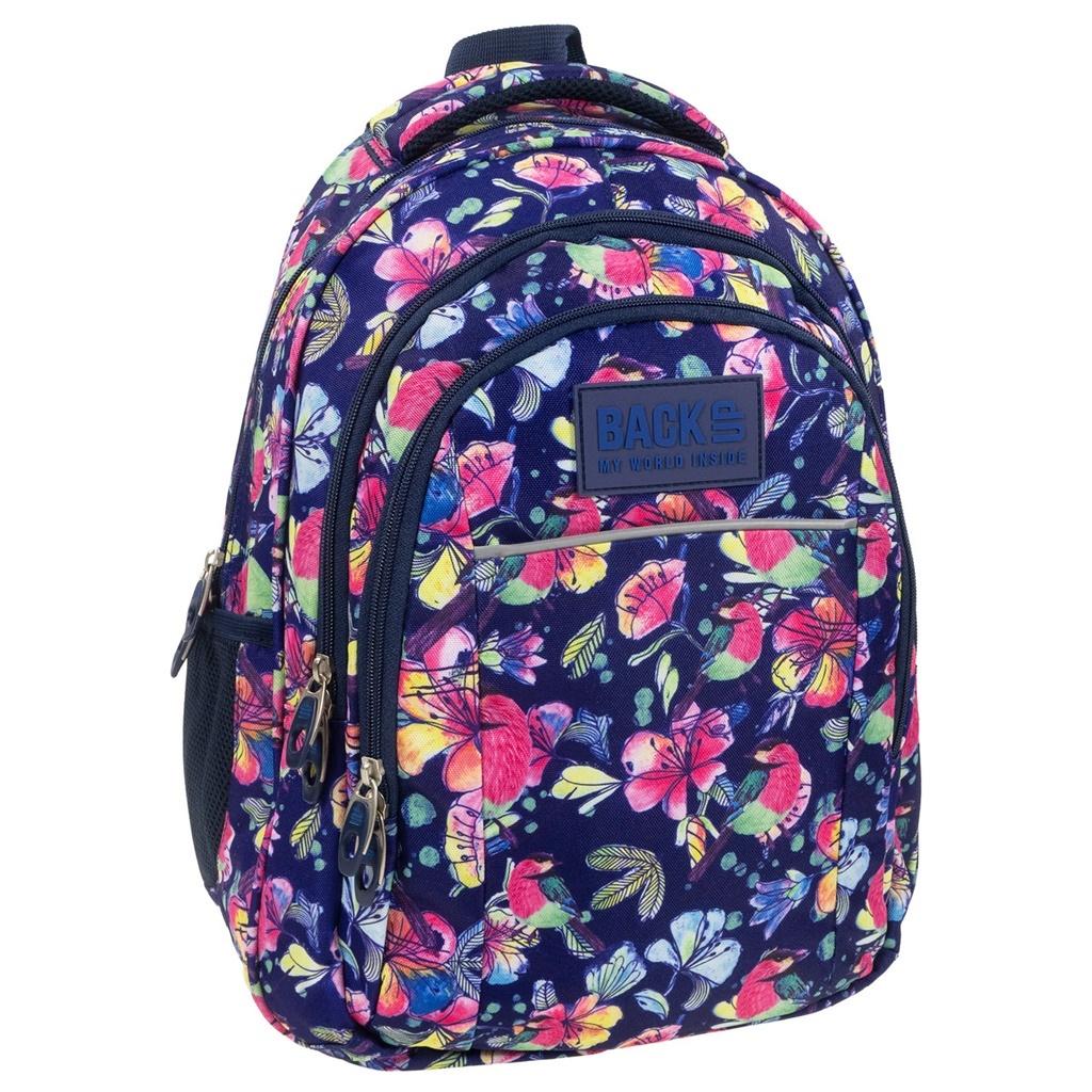 Plecak BackUP model H w najmodniejszych w tym sezonie pastelowych kolorach i w dużych dominujących motywach kwiatowych. Wyposażenie: - 3 duże komory - 2 boczne kieszenie na napój - w tylnej komorze kieszenie na laptopa i tablet - w trzeciej komorze wygodna kieszeń na zamek na drobiazgi - w przedniej komorze poręczny organizer z kieszonką na zamek oraz odczepianym uchwytem na klucze - dno plecaka wykonane ze wzmocnionej tkaniny - wygodne, ergonomiczne szelki - wygodny uchwyt do przenoszenia plecaka i dodatkowy uchwyt do powieszenia - ergonomiczne, usztywnione plecy wyprofilowane oddychającą pianką - dyskretny odblask na szelkach oraz na froncie plecaka - rozmiar: 42x30x18 cm BackUP - My world inside Marka młodzieżowa BackUP powstała w oparciu o długoletnie doświadczenie branżowe swojego producenta firmy Derform. W najnowszej kolekcji nawiązano do najmodniejszych światowych trendów odpowiadając tym samym na potrzeby użytkowników. Plecaki tej marki charakteryzują się dbałością o każdy szczegół i troską o zdrowie użytkowników. Uzupełnieniem kolekcji plecaków jest szeroka gama piórników, worków na plecy, kosmetyczkę, toreb fitness oraz toreb sportowych.