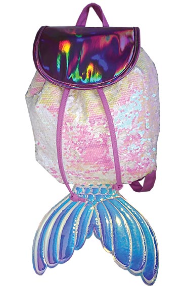 Plecak ma atrakcyjny design w stylu syrenki, z dwustronnymi, mieniącymi się cekinami jasnoróżowymi, od spodu białymi. Idealnie nada się do przedszkola, na basen czy szkolną wycieczkę. Plecak posiada jedną komorę, ściąganą sznurkiem i zamykaną klapą na rzep. Posiada regulowane szelki, oraz uchwyt do zawieszenia. Wysokość plecaka (bez ogona) 30 cm, z ogonem 47 cm.