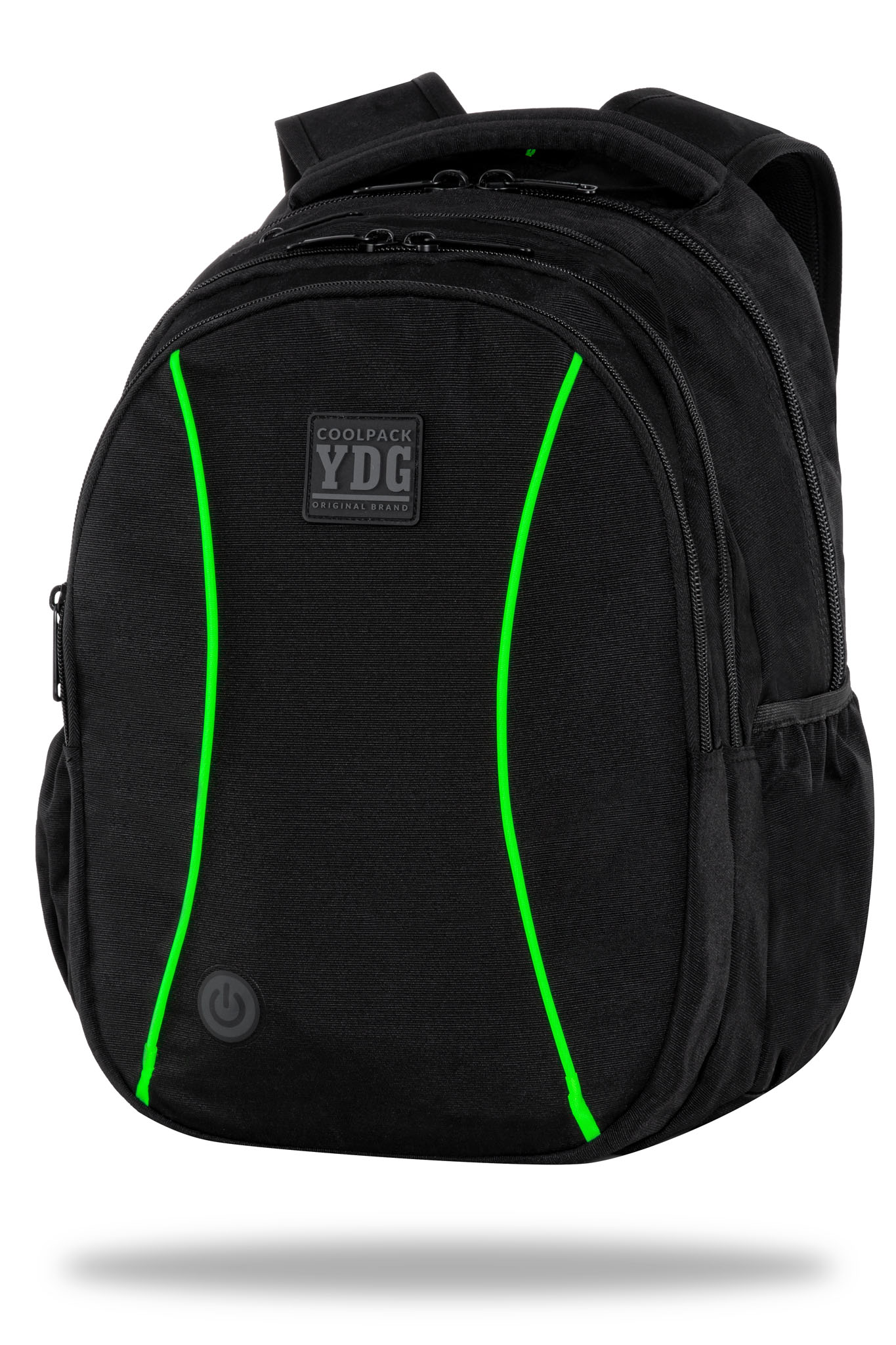 Świecący plecak młodzieżowy JOY L firmy CoolPack. W uniwersalnym czarnym kolorze z zielonymi diodami LED. Plecak preferowany dla uczniów 7-8 klasy podstawowej oraz starszych! System LED świeci w 3 trybach. Plecak posiada trzy komory z możliwością spakowania LAPTOPA! Po bokach znajdują się kieszenie na bidon. Do plecaka dołączony POWERBANK !
