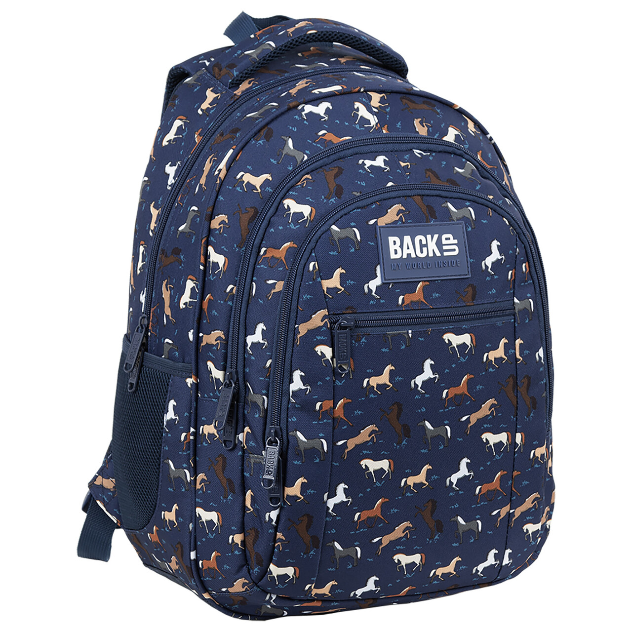 Motywy koni w najpiękniejszym umaszczeniu można podziwiać na intensywnie granatowym tle, to ulubiony wzór wszystkich miłośniczek jeździectwa. Nazwa wzoru: konie. Wnętrze: - 3 komory - przednia kieszonka na zamek - 2 boczne kieszenie na napój - w pierwszej komorze kieszenie na laptopa i tablet - w trzeciej komorze poręczny organizer z dodatkową z kieszonką na zamek i uchwytem na klucze, 2 kieszonki na długopisy - 2 boczne kieszenie na bidon - pasek mostka - dno plecaka wykonane ze wzmocnionej tkaniny - miękkie szelki z regulacją długości - wygodny uchwyt do przenoszenia plecaka oraz dodatkowy uchwyt do powieszenia - rozmiar 42x30x20 cm - waga: 880g