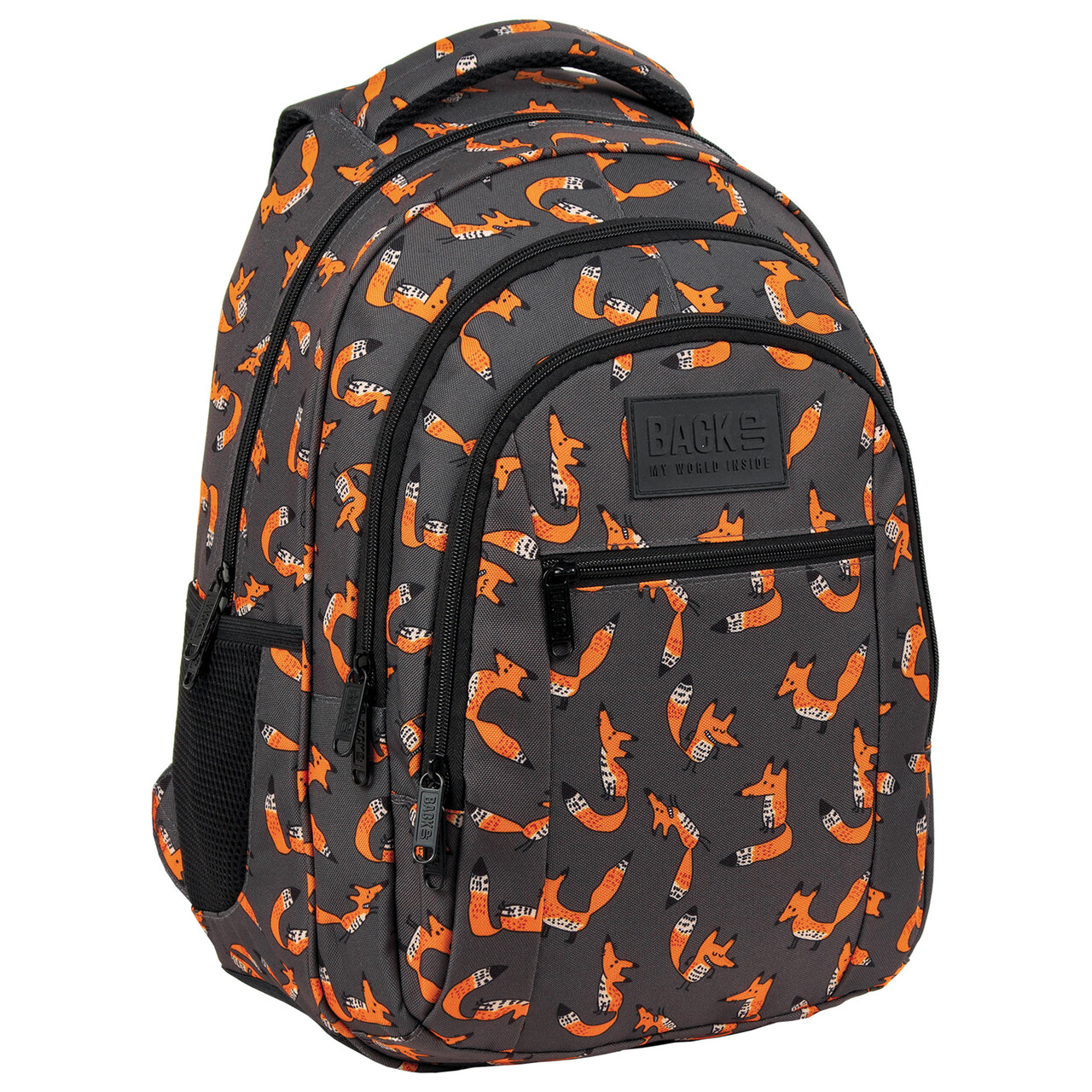 Na grafitowym tle kryją się sprytne, rude liski z niezwykle chytrymi minkami. Czarne dodatki, takie jak zamki czy kieszenie, dodają plecakowi charakteru. Nazwa wzoru: fox. Wnętrze: - 3 komory - przednia kieszonka na zamek - 2 boczne kieszenie na napój - w pierwszej komorze kieszenie na laptopa i tablet - w trzeciej komorze poręczny organizer z dodatkową z kieszonką na zamek i uchwytem na klucze, 2 kieszonki na długopisy - 2 boczne kieszenie na bidon - pasek mostka - dno plecaka wykonane ze wzmocnionej tkaniny - miękkie szelki z regulacją długości - wygodny uchwyt do przenoszenia plecaka oraz dodatkowy uchwyt do powieszenia - rozmiar 42x30x20 cm - waga: 880g