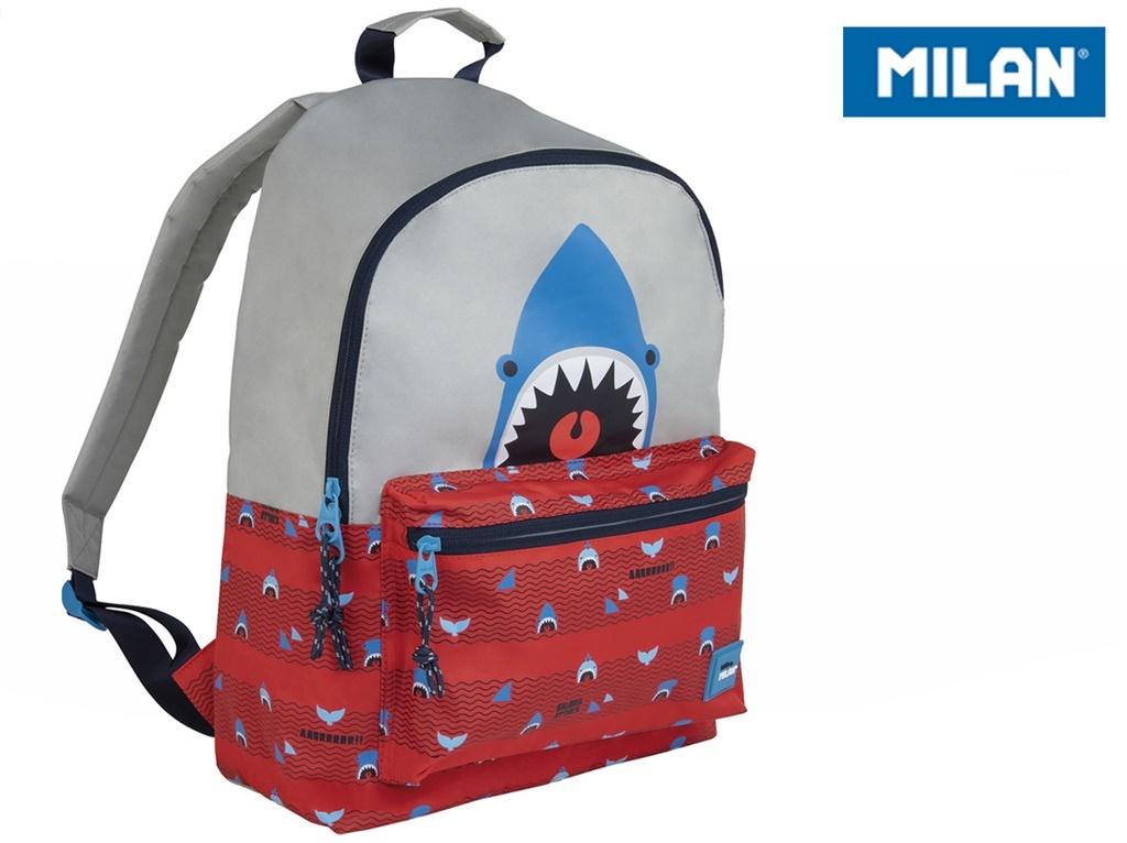 Plecak młodzieżowy MILAN z kolekcji SHARK ATTACK czerwono-szary. Przegroda główna zapinana na suwak. Z przodu dodatkowa kieszeń zapinana na suwak. Ochronna przegroda na laptop i mała łatwo dostępna kieszeń wewnętrzna. Regulowane miękkie szelki. Górny uchwyt do zawieszenia. Idealny do szkoły lub na wycieczkę. Wymiary: 41 x 30 x 18 cm. Pojemność: 21 litrów. Materiał wierzchni: 100% poliestr. Podszewka 150D poliester.