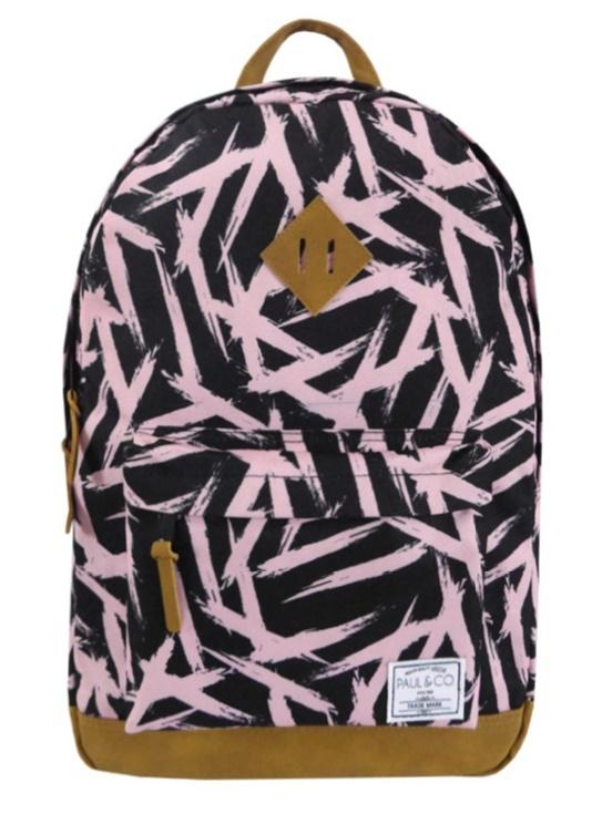 Plecak dwukomorowy czarny różowe Kreski PAUL&CO