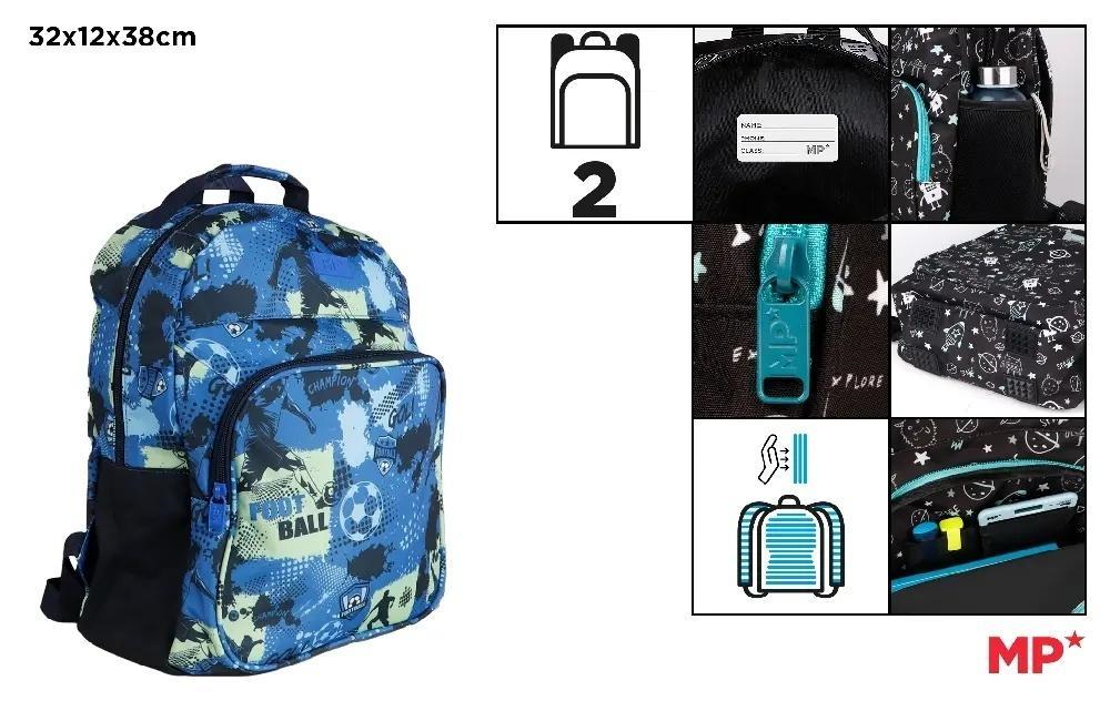 Opakowanie Plecak dwukomorowy Football niebieski 32x12x38cm