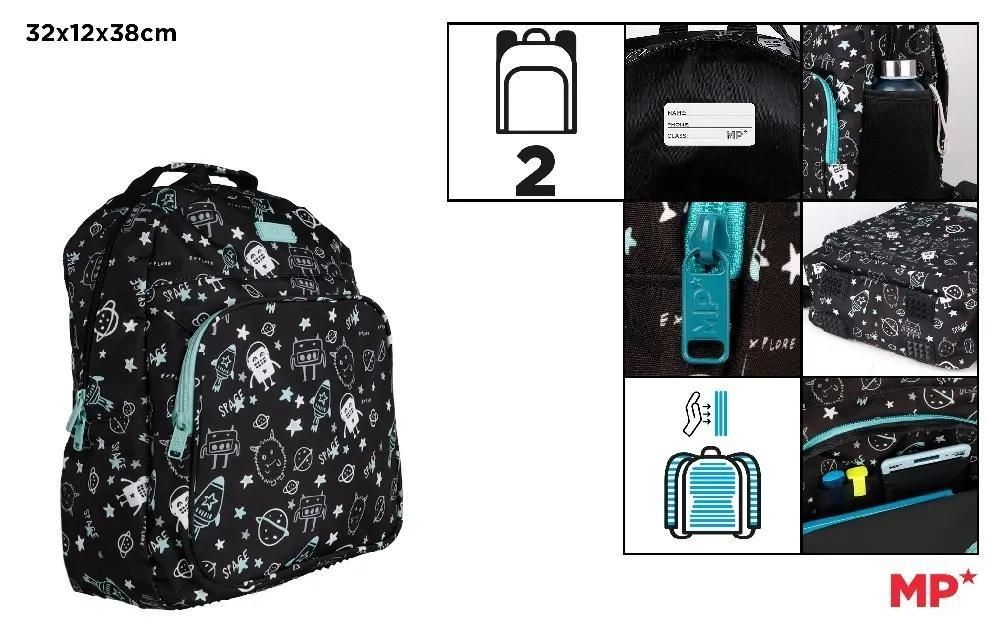 Opakowanie Plecak dwukomorowy Kosmos czarny 32x12x38cm