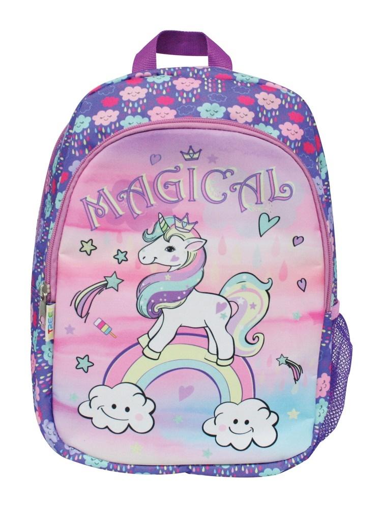 Wysokiej jakości, uszyty z dbałością o szczegóły plecaczek, idealny dla przedszkolaka. Doskonale sprawdzi się na wycieczki duże i małe oraz do codziennej zabawy w domu. Cechy: - pojemna komora główna zamykana na zamek błyskawiczny - przednia kieszonka termiczna zamykana na zamek błyskawiczny - dwie boczne kieszonki z materiału na bidon i akcesoria - lekko usztywnione, wyściełane plecy - szerokie, grube szelki z regulacją, z ciekawym, różnym zadrukowaniem - uchwyt do zawieszenia plecaka - kolorowy przód z naszywką 3D - sztywna konstrukcja - zafoliowane miejsce na podpis Wymiary: 23 x 33 x 12 cm Waga: 0,25