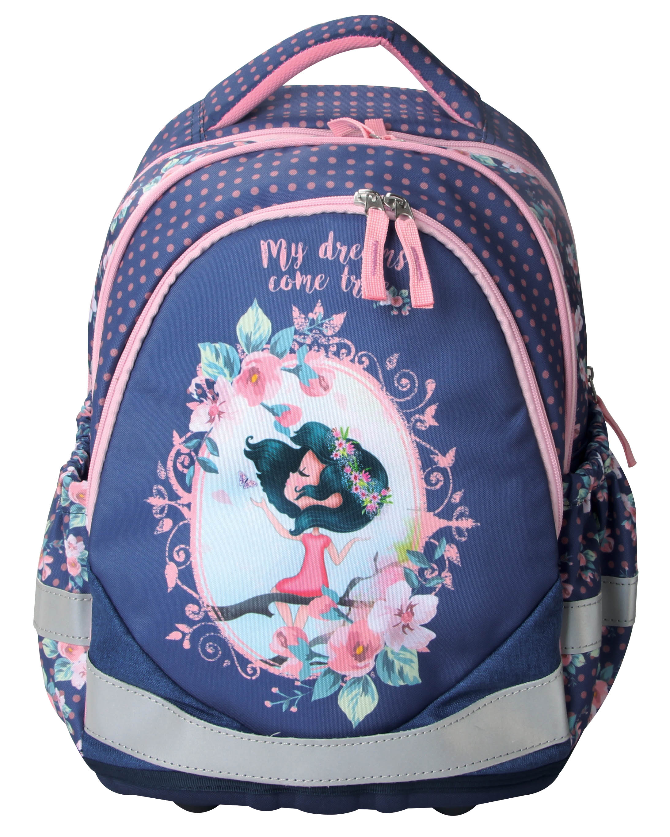 Trzykomorowy plecak idealnie sprawdzi się zarówno w szkole jak i na zajęciach po szkolnych. Dzięki swojej niewielkiej wadze będzie również kapitalnym towarzyszem do wypraw rowerowych czy pieszych za miasto. Cechy plecaka: - pojemna komora główna zamykana na podwójny zamek błyskawiczny - pojemna komora średnia zapinana na podwójny zamek błyskawiczny - przednia komora - dwie boczne kieszonki na bidon lub akcesoria - wzmocniony spód plecaka - wyściełane, oddychające plecy - szerokie, oddychające szelki z regulacją - miękki, oddychający uchwyt do przenoszenia plecaka w ręku Wymiary: 31 x 17 x 45 cm Waga: 0,8 kg