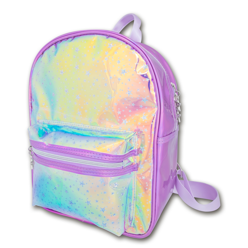 Plecak wykonany jest z holograficznego materiału w gwiazdki błyszczy się i mieni wieloma kolorami. Posiada jedną główną komorę oraz drugą mniejszą z przodu. Obie komory są zamykane na suwak zakończony metaliczną gwiazdką. Plecak Glossy Star wykonany jest z mieniącego się wieloma kolorami, półprzezroczystego materiału holograficznego w srebrne gwiazdki. Boki plecaka i tył wykończone są błyszczącym, fioletowym materiałem. Plecak posiada regulowane ramiączka. Plecak wyposażony jest w uchwyt do powieszenia go.