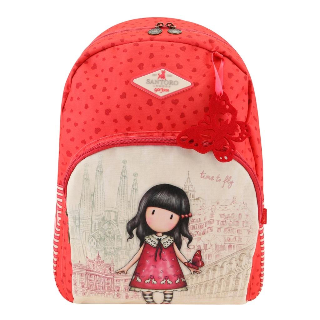 • Wyjątkowo praktyczny i piękny plecak z wizerunkiem dziewczynki Gorjuss w delikatnych odcieniach koralowców i wanilii.