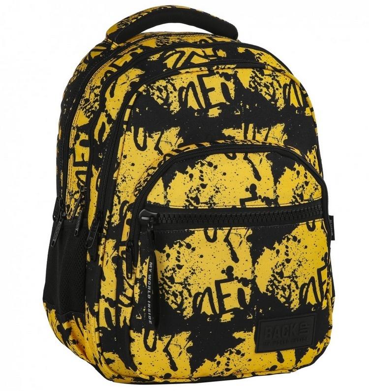 Plecak BackUP model M 43 intensywny, czarny wzór w żółte plamy przywodzący na myśl nordyckie runy, posiadający nutkę tajemniczości, to niekwestionowany hit sprzedaży w tej kolekcji. Nazwa wzoru: runy. Wyposażenie: - 4 główne komory - 1 przednia kieszeń zapinana na zamek XXL - dodatkowa kieszeń np. na telefon z tylnej strony pleców, umożliwiająca szybki dostęp bez zdejmowania plecaka - 2 boczne kieszenie na napój - w pierwszej komorze kieszenie na laptopa i tablet - w przedniej komorze poręczny organizer z 2 kieszeniami na zamek oraz uchwytem na klucze - w przedniej komorze poręczna kieszeń na zamek na drobiazgi - dno plecaka wykonane ze wzmocnionej tkaniny - miękkie, ergonomiczne szelki - wygodny uchwyt do przenoszenia plecaka i dodatkowy uchwyt do powieszenia - ergonomiczne, usztywnione plecy wyprofilowane oddychającą pianką uzupełnione systemem Air Flow - dyskretny odblask z na szelkach - odblaskowa taśma przytroczona do zamka - rozmiar: 41x30x22 cm