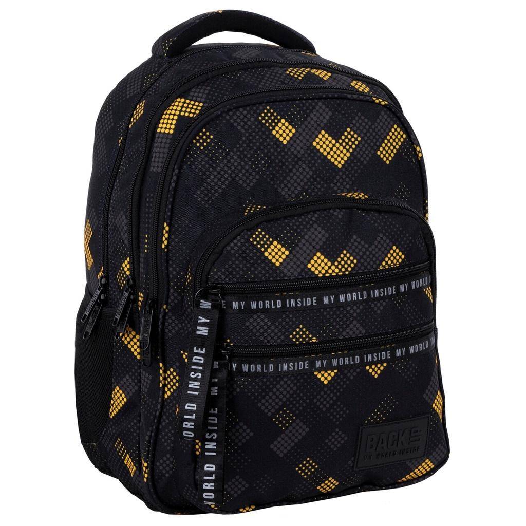 Czarny plecak w żółte i szare punkciki, które układają się w geometryczne kształty, tworzą w całości niesamowity motyw! Kontrastowy, żółty kolor dodaje charakteru. Plecak jest bardzo stonowany, a jednocześnie ma w sobie coś intrygującego. Dodatkowo nie trzeba się martwić, że będzie widać na nim jakieś zabrudzenia.