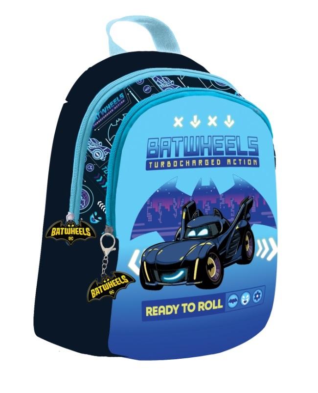 Mały plecak wycieczkowy, przedszkolny i do zerówki. Zdobiony modną grafiką, która przypadnie do gustu najmłodszym. Plecaczek posiada pojemną komorę główną, kieszeń przednią i boczne kieszonki na wodę lub bidon. Niebieski plecaczek przedstawiający Batmana to prawdziwy strzał w dziesiątkę dla chłopców Jest to model wykonany z trwałych i odpornych na uszkodzenia materiałów. Zastosowane do produkcji tworzywa nie stanowią żadnego zagrożenia dla malucha. Trzeba dodać, że opisywany plecak zapewnia najwyższą wygodę użytkowania. Tylna komora elastycznie dopasowuje się do kręgosłupa. Opis plecaczka przedszkolnego