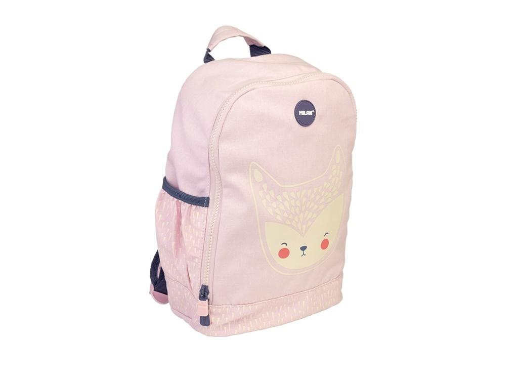 Plecak MILAN mały z kolekcji BERRYWOODz nadrukiem sympatycznego zwierzaka Po bokach dodatkowe kieszonki. Regulowane miękkie szelki. Górny uchwyt do zawieszenia. Idealny do przedszkola, szkoły lub na wycieczkę. Wymiary: 33x23,5x10 cm. Materiał wierzchni: 100% bawełna. Podszewka 150D poliester.