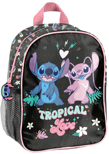 Mały plecak przedszkolny, jedna komora, jedna boczna kieszeń z siatki (mieści małą butelkę, bidon lub termos).